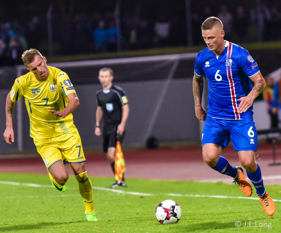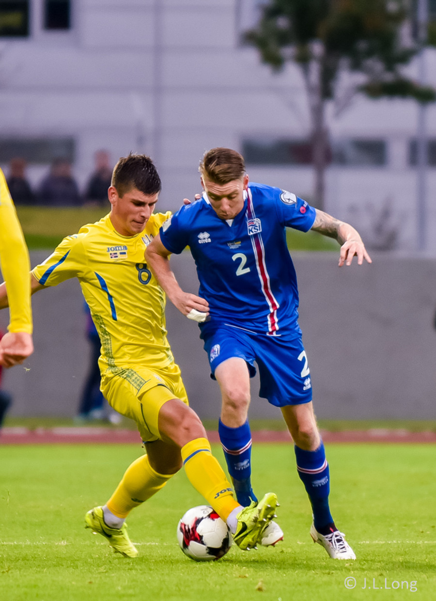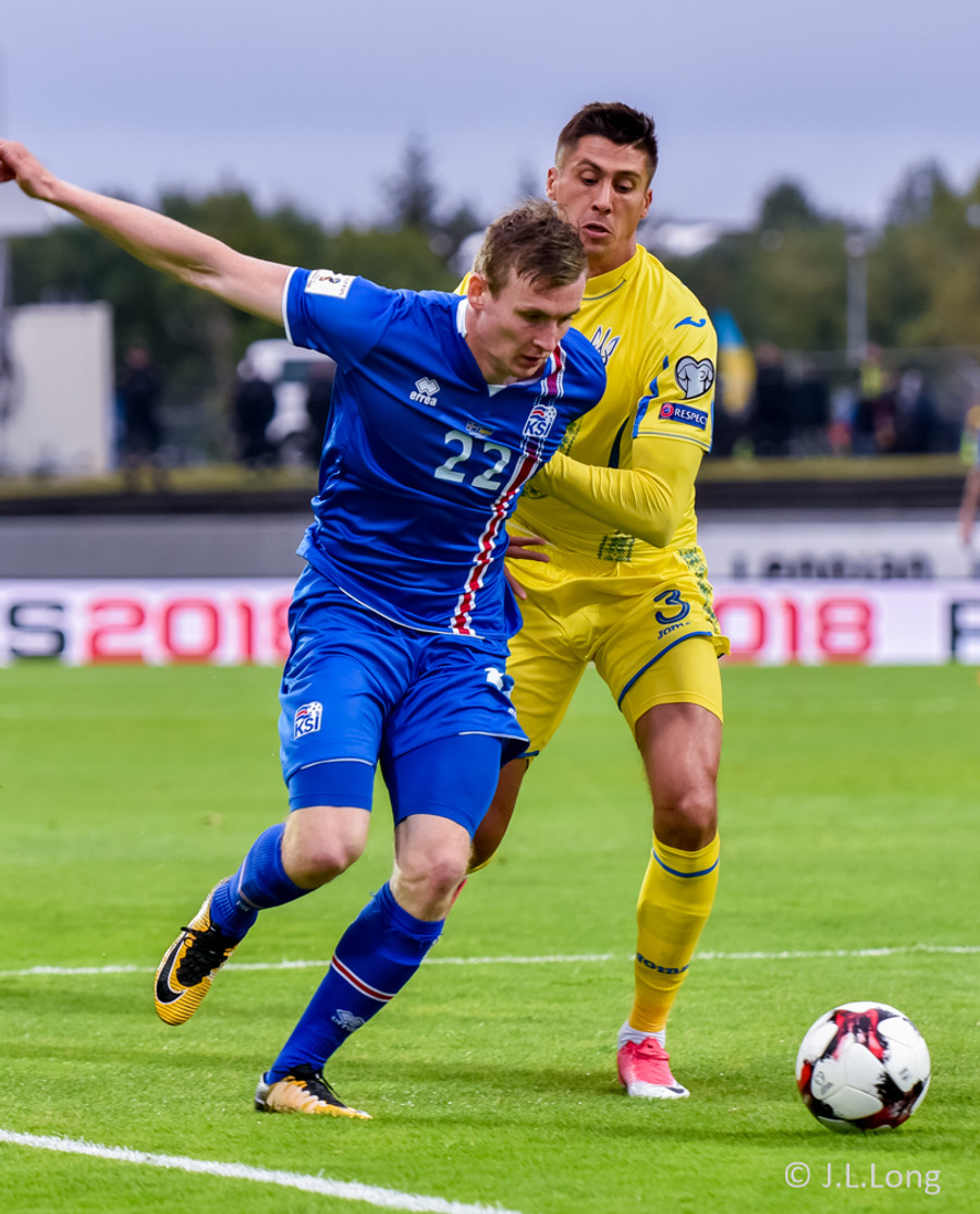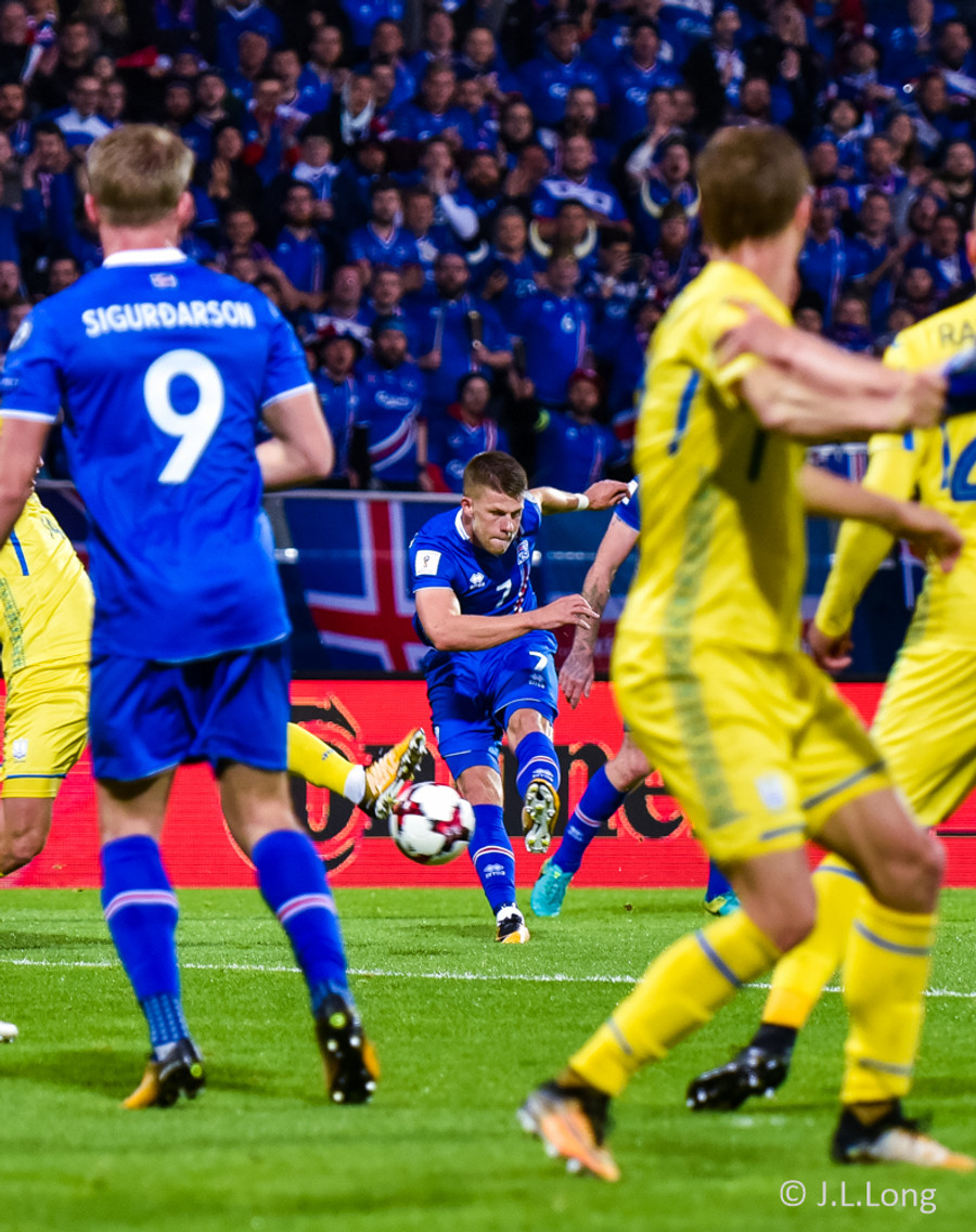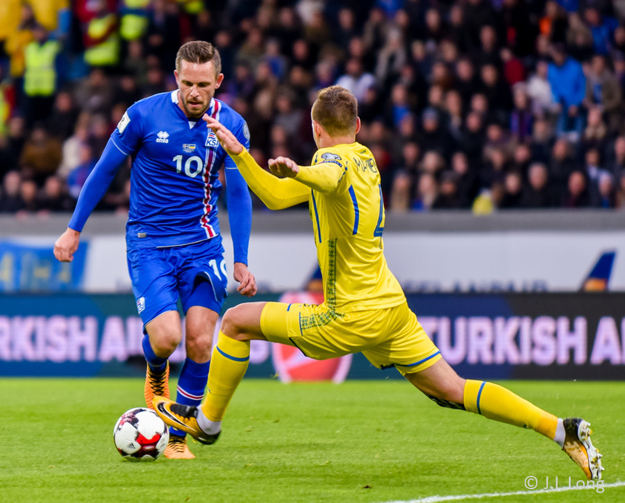 JÓHANN BERG með geggjuð tilþrif hér út á hægri kanti. Fíflar einhverja 2-3 leikmenn Úkraínu áður en hann reynir skotið sem er reyndar ekki jafngott og hitt!