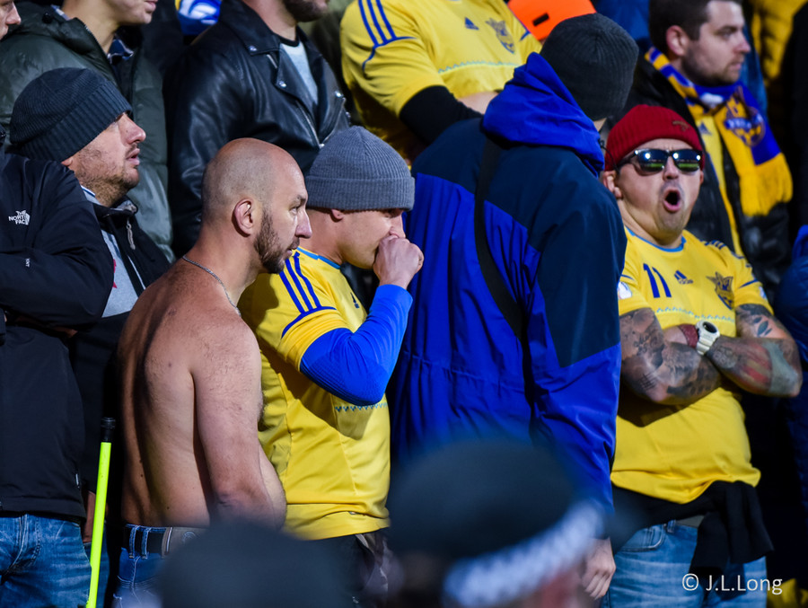 Fólk er farið að flykkjast á völlinn. Mikil lögreglugæsla er við hólf stuðningsmanna Úkraníu, þeir syngja hástöfum. Gaman að sjá þetta!