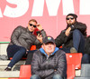 Sólin lágt á lofti og skín beint á fréttamannastúkuna. Glerið vel skítugt sem við horfum út um svo skyggnið er alls ekki gott.