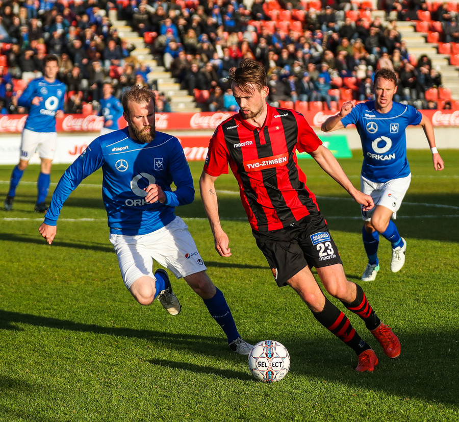 Hilmar Árni aðeins að minna á hvað hann er ógeðslega góður í fótbolta. Sýnir lipur tilþrif og Milos Ozegovic fellur bara á jörðina.