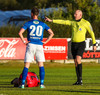 Haraldur vill meina að Alex Freyr hafi farið í olnbogann á sér. Við fyrstu sýn sýndist mér þetta einfaldlega vera skelfileg mistök hjá Halla Björns. Fróðlegt að sjá þetta aftur í Pepsi-mörkunum.