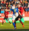 Baldur tapar boltanum, Túfa kemur honum á Castillion en Hörður Árnason kemst fyrir skot hans.