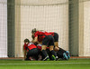 Markaskorarinn fer útaf og Ragnheiður Kara kemur inná. Mér sýnist Margrét Sif ætla fremst, Ísafold í holuna og Ragnheiður á vinstri kant.