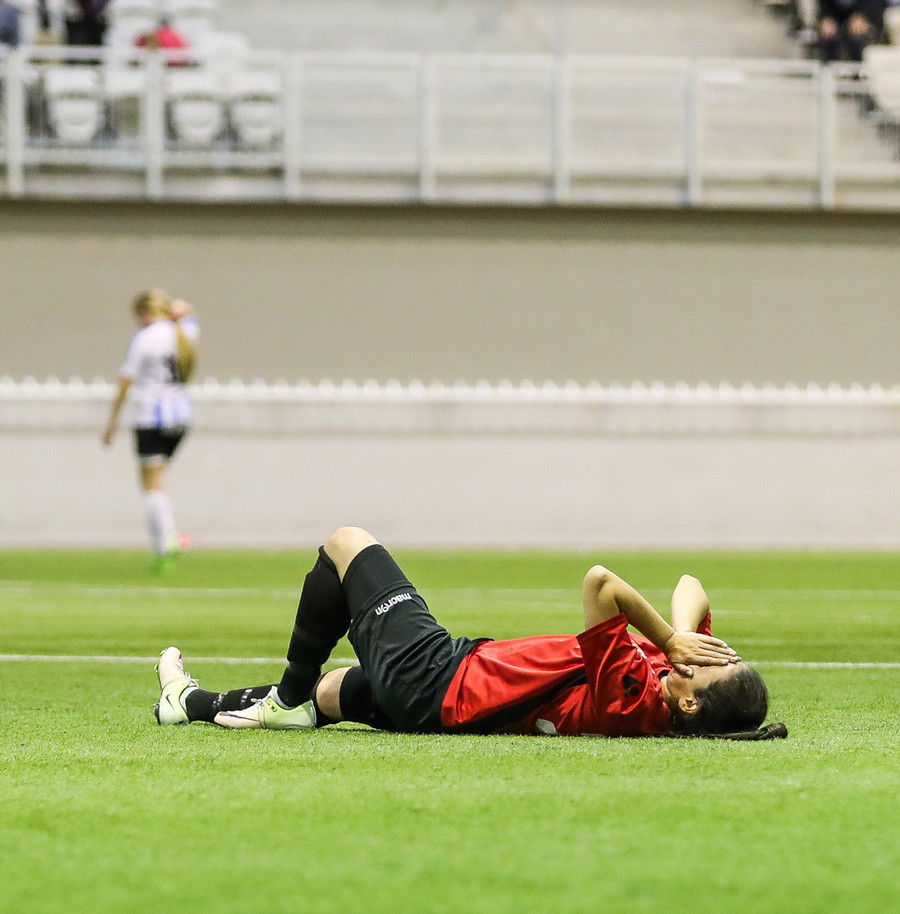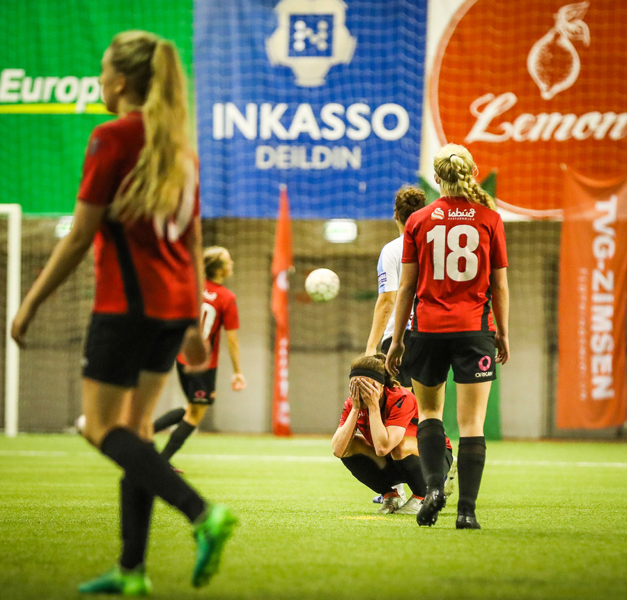 Klaufalegt hjá Brynju. Hún tapar boltanum til Margrétar Sifjar sem hefði getað komist ein í gegn. Brynja bjargar sér fyrir horn með því að rífa í andstæðinginn og drepa sóknina.
