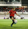 Anna María reynir skot utan teigs. Hún er með hörkufót og ekkert að því að láta vaða. Setur boltann samt yfir í þetta skiptið.