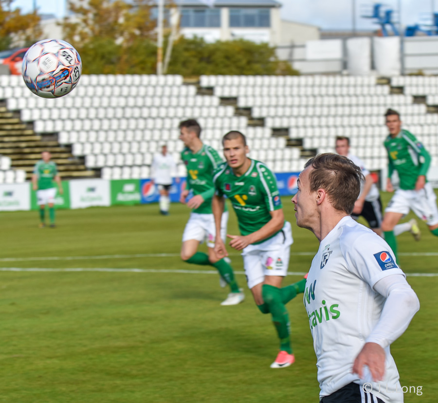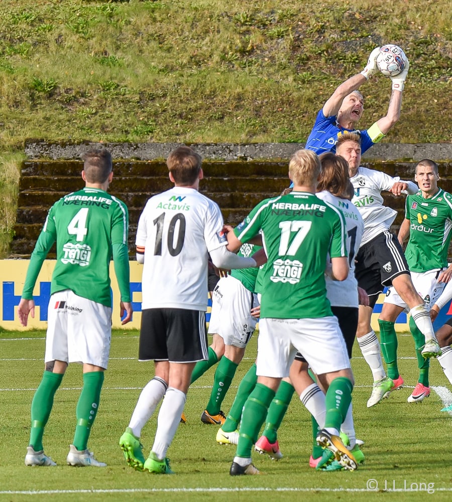 Atli Guðna með góða fyrirgjöf að fjærstöng en Gulli stökk upp og blakaði boltanum útaf.