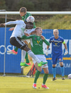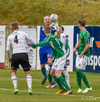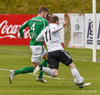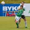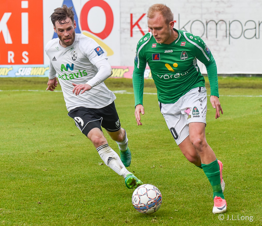 Æææææææ úfffff......Aron Bjarnason fékk frábæra sendingu frá Gísla, þeir komust tveir á einn, hann og Sveinn Aron. Aron kominn á móti Gunnari og í stað þess að skjóta reynir hann sendingu á Svein Aron sem Jón Ragnar Jónsson komst fyrir og sendi boltann út af.