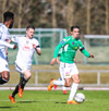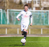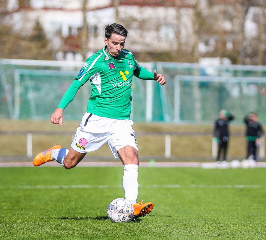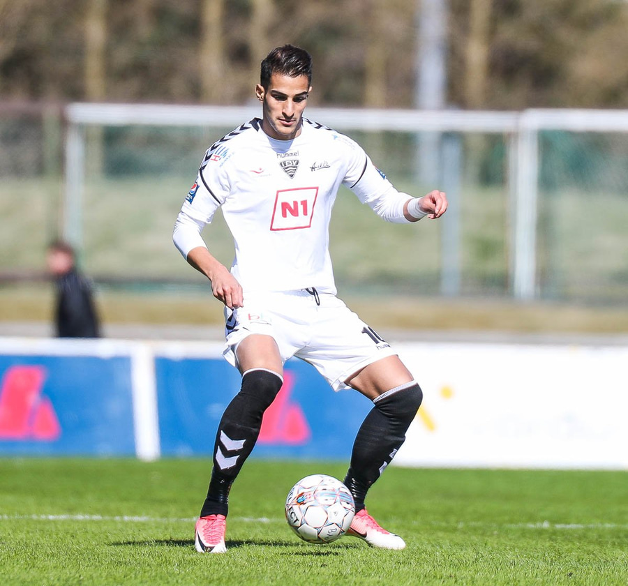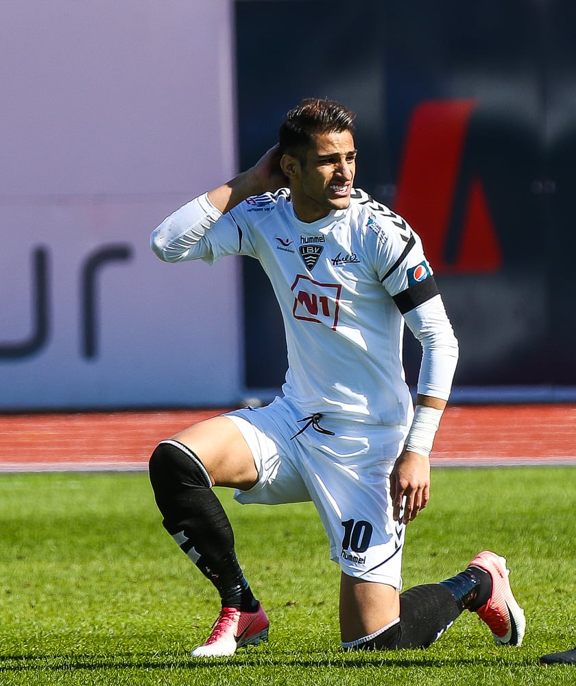 Missir boltann klaufalega framarlega á vellinum og togar síðan í Felix og uppsker gult kort.