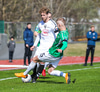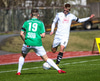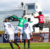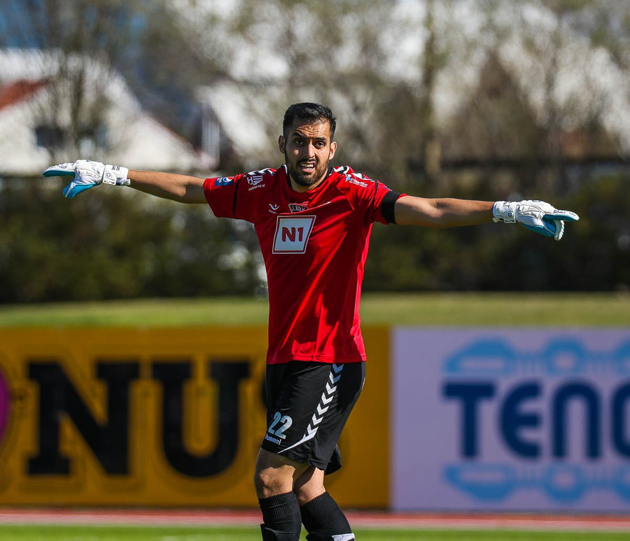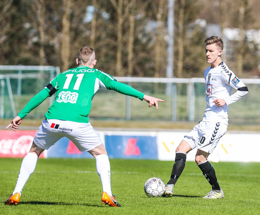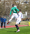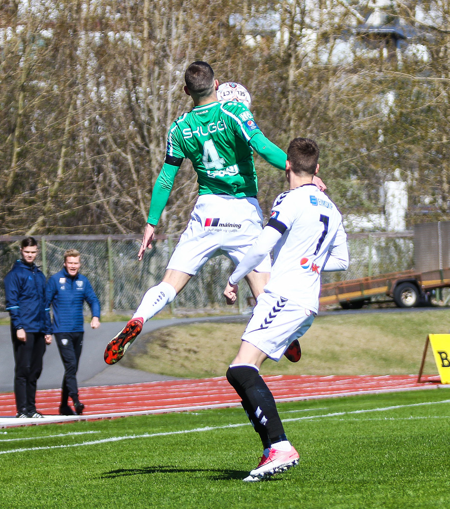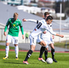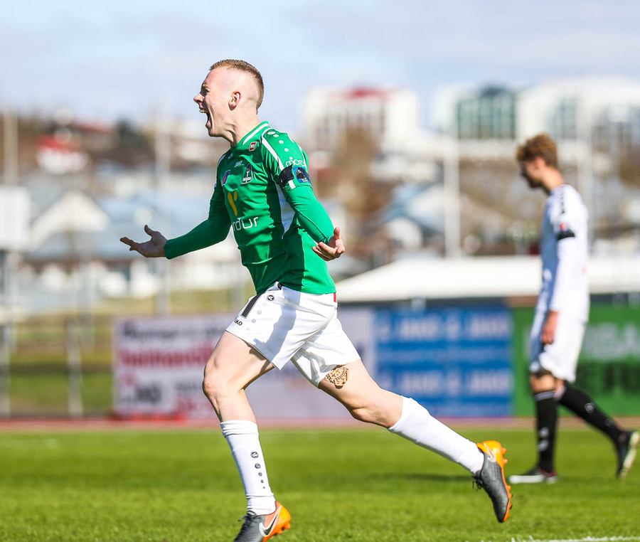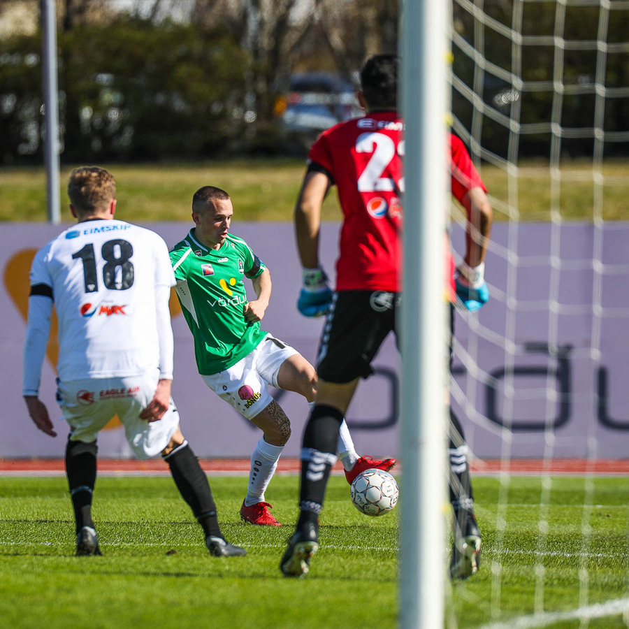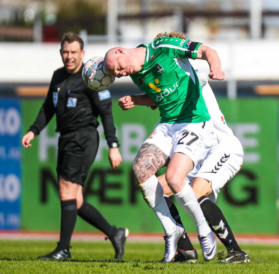 Arnþór Ari reynir fyrirgjöf frá hægri en guð minn almáttugur. Hann skóflar boltanum líklega 30 metra upp í loftið og aftur fyrir markið.