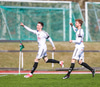 Arnþór Ari með hælsendingu á Gísla Eyjólfsson sem leggur boltann í netið snyrtilega við vítateigslínuna.
