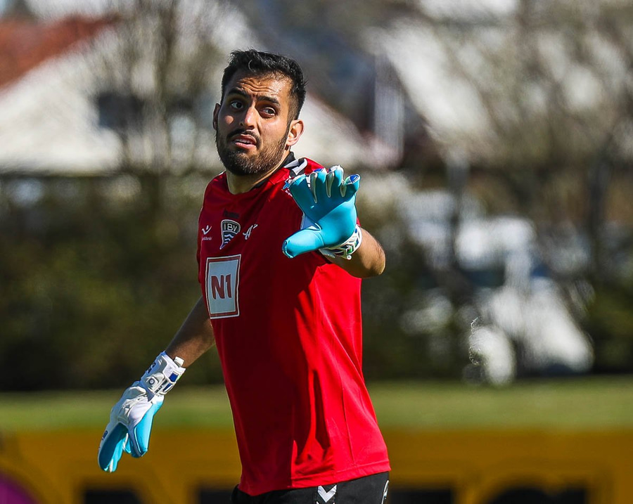 Shahab við að sleppa í gegn en er flaggaður rangstæður.