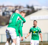 Arnþór Ari með skot tiltölulega beint á Derby en hann slær boltann upp í loftið og Willum nýtir sér það og skallar boltann yfir Derby og í netið af stuttu færi.