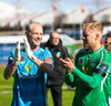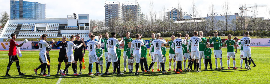 Liðin eru að ganga út á völlinn. Það fer að styttast í að leikurinn fari að hefjast.