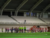 Verið að lesa upp liðin og fólk að koma sér fyrir. Vel klappað fyrir heimamönnum