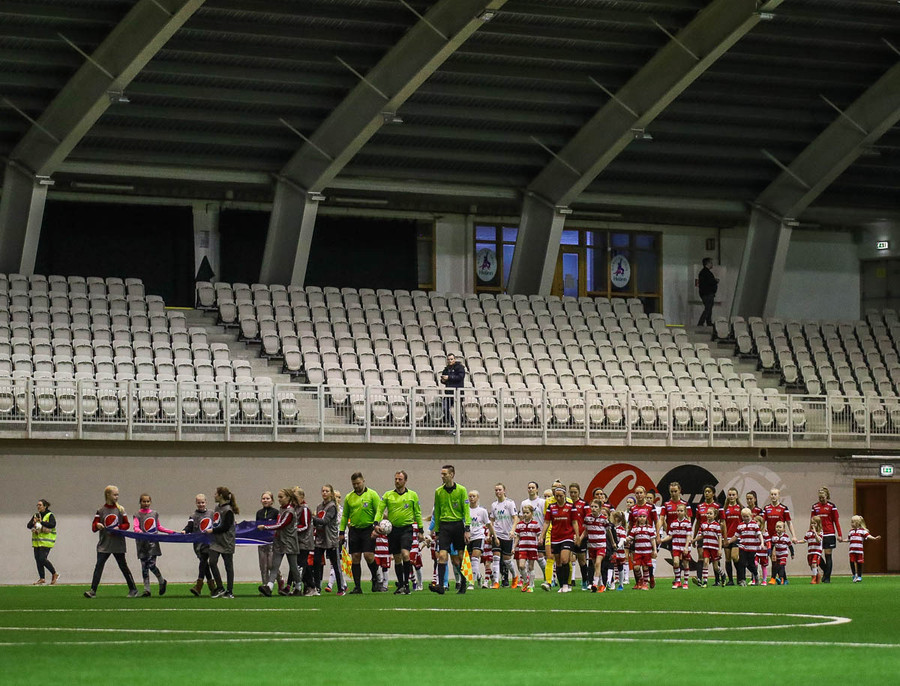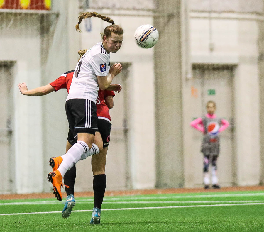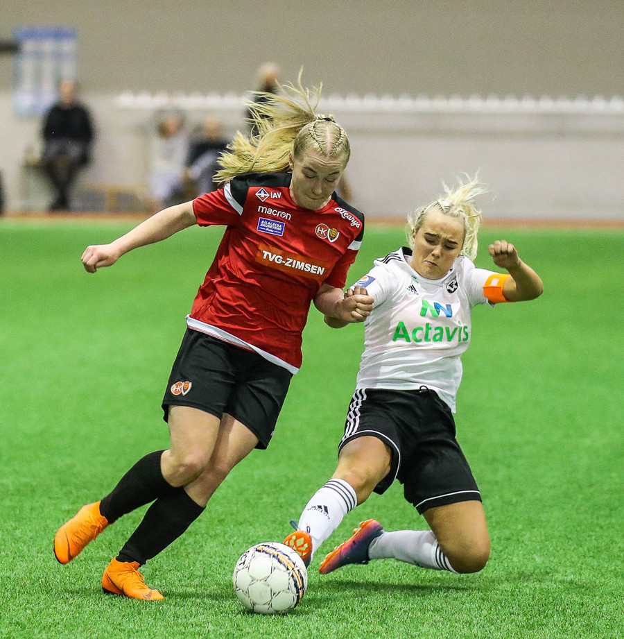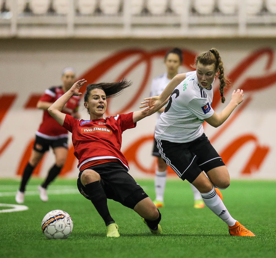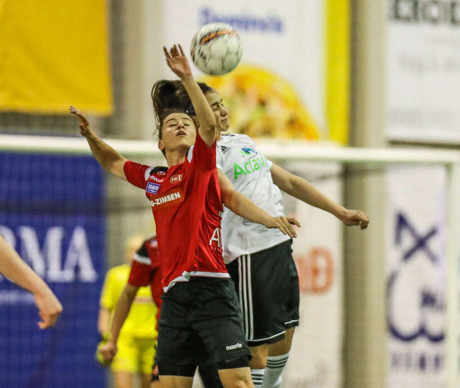 Leikur stöðvaður eftir að Hanna Marie og Fatma skella höfðum saman. Ekkert alvarlegt að þeim.