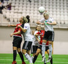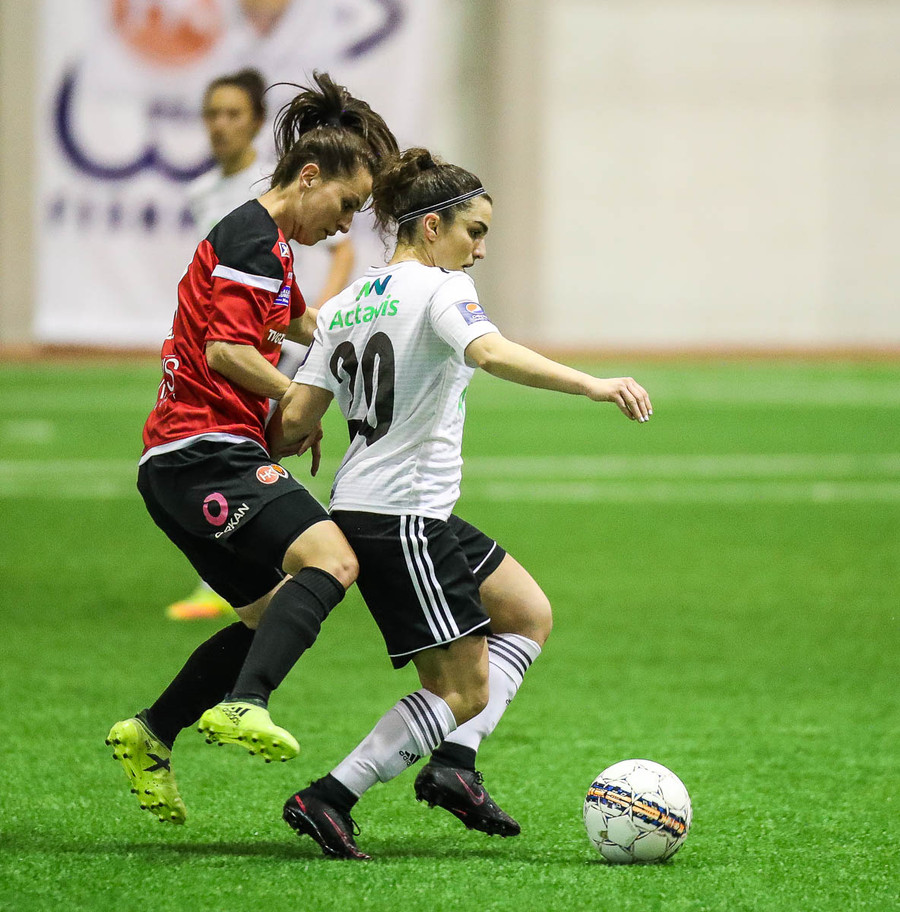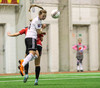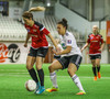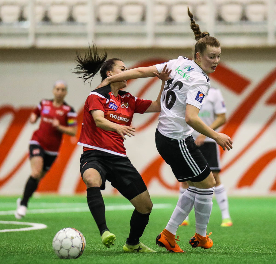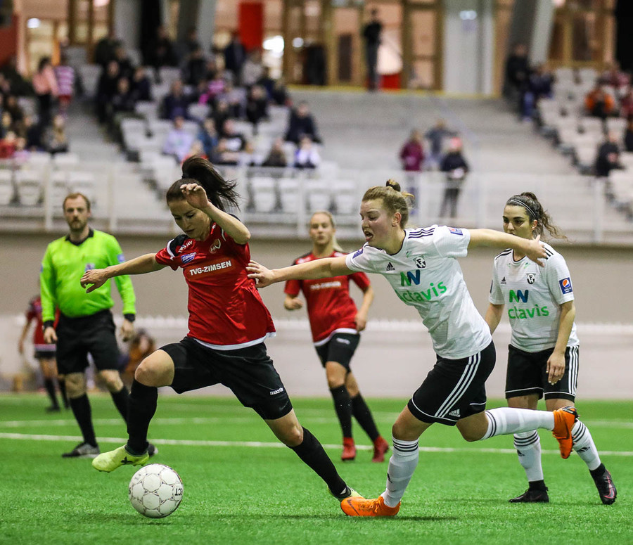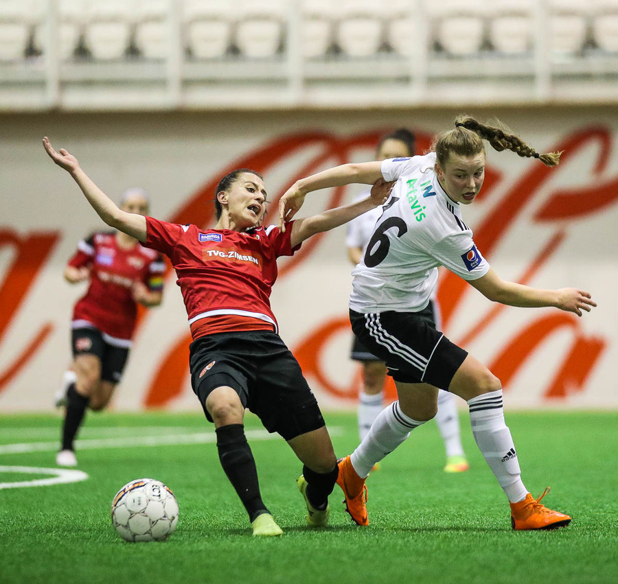 Leikur stöðvaður eftir að Hanna Marie og Fatma skella höfðum saman. Ekkert alvarlegt að þeim.