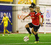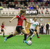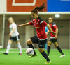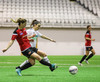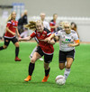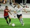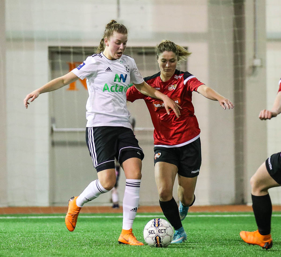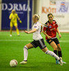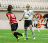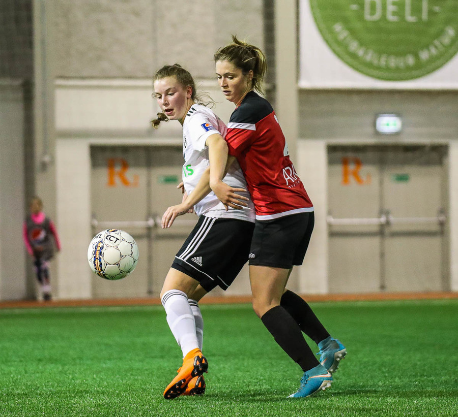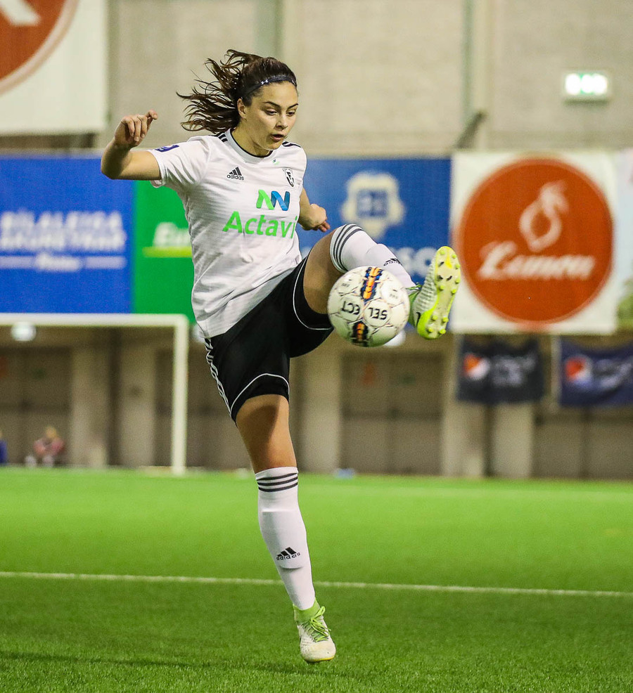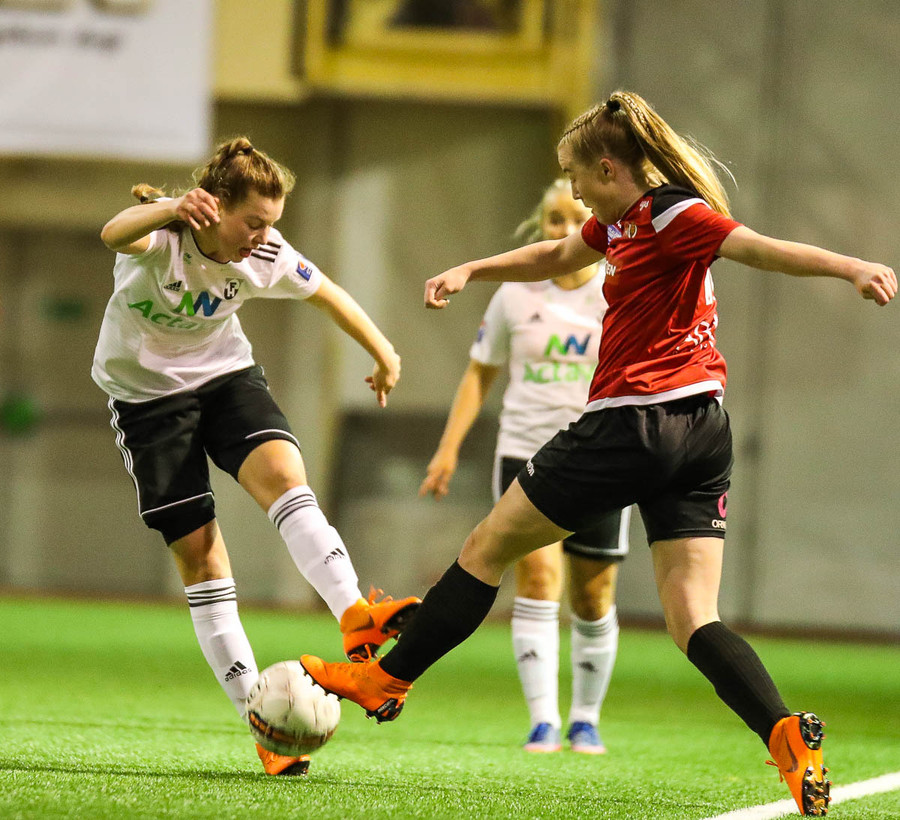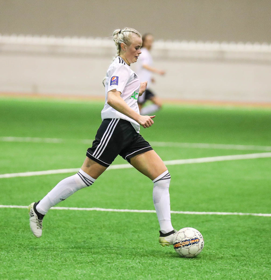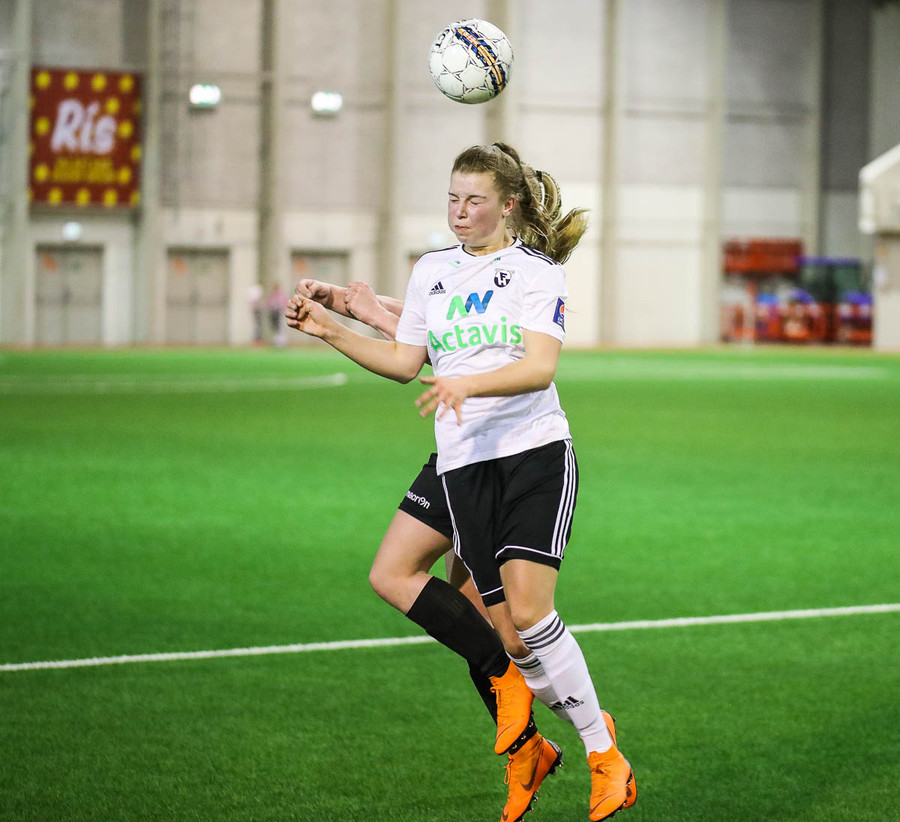 Hanna Marie kemst næstum í dauðafæri en Björk Björnsdóttir kemur út og nær boltanum.