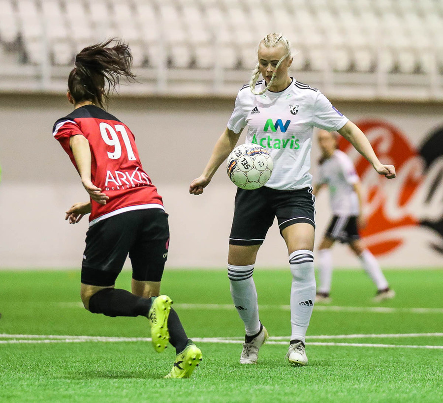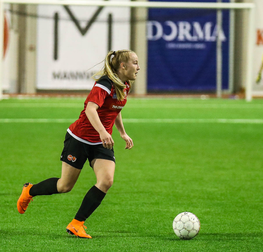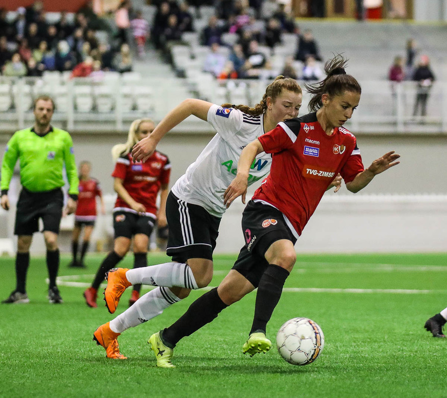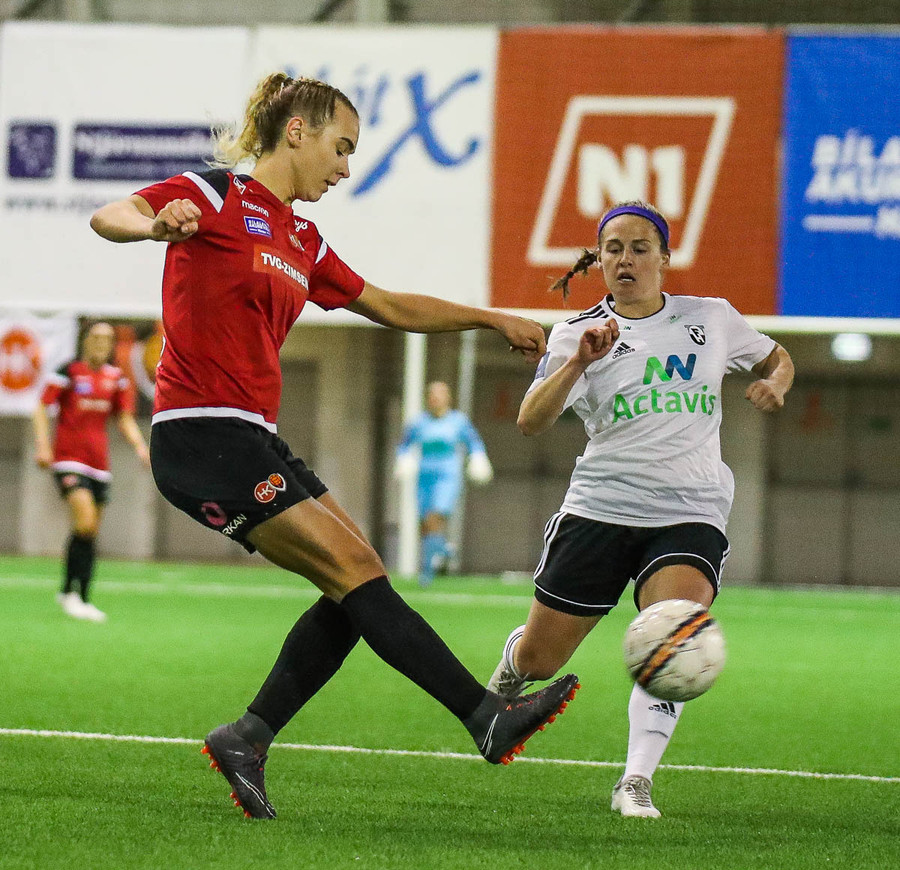 HK/Víkingur fær aukaspyrnu á fínum stað en fyrirgjöfin frá Stefaníu endar í fanginu á Tatiönu