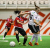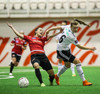 Diljá Ýr og Björk Björnsdóttir berjast um bolta, og Diljá sparkar í löppina á Björk. Óviljaverk.
