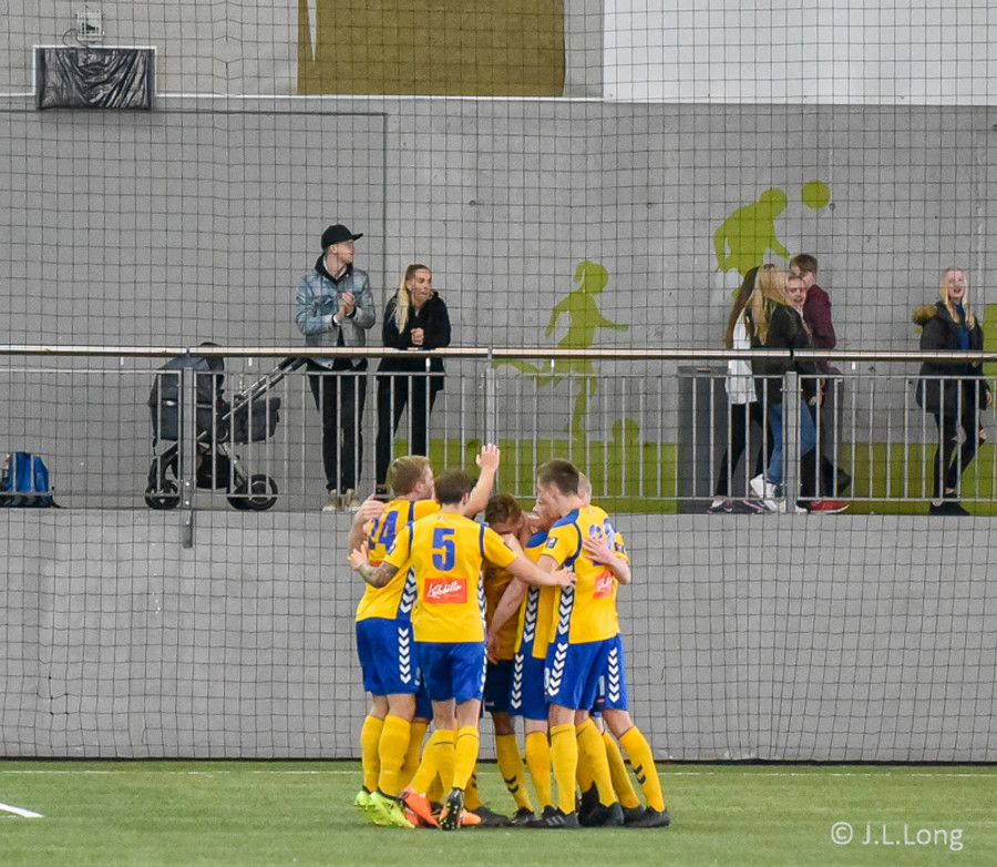 Jónatan Ingi með aukaspyrnu inná teiginn þar sem að Pétur Viðars er einn á auðum sjó og skallar hann inn.