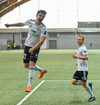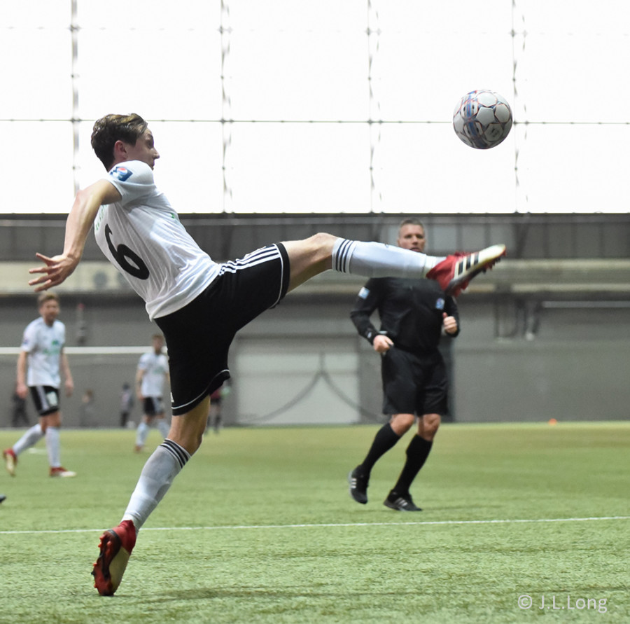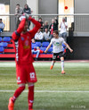 Þórður skallar boltann beint á Brand sem að tekur hann á lofti yfir þann fyrrnenfda og í markið! Þetta var ótrúlegt.