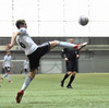 Valmir reynir hér að taka boltann á lofti á vítateigshorninu eftir skyndisókn Fjölnismanna en skotið er hátt yfir.
