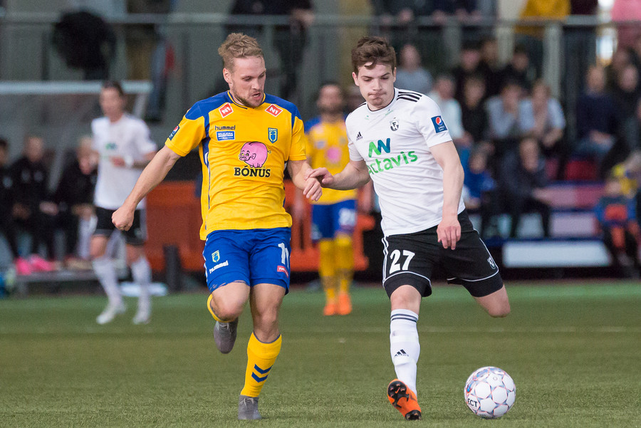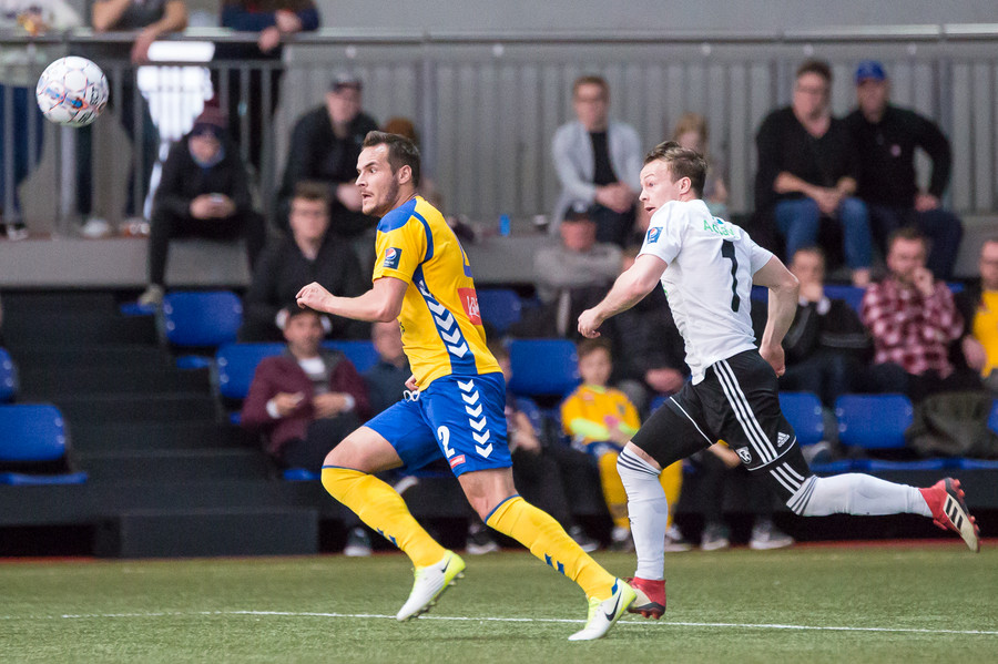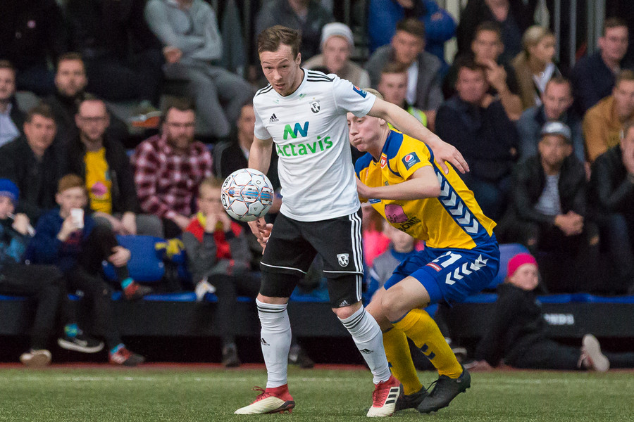 Steven Lennon sleppur hér í gegn eftir góðan undirbúning Castillion en Þórður Ingason er fljótur út og lokar á hann.