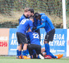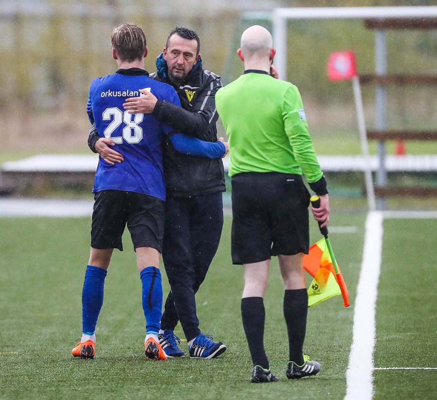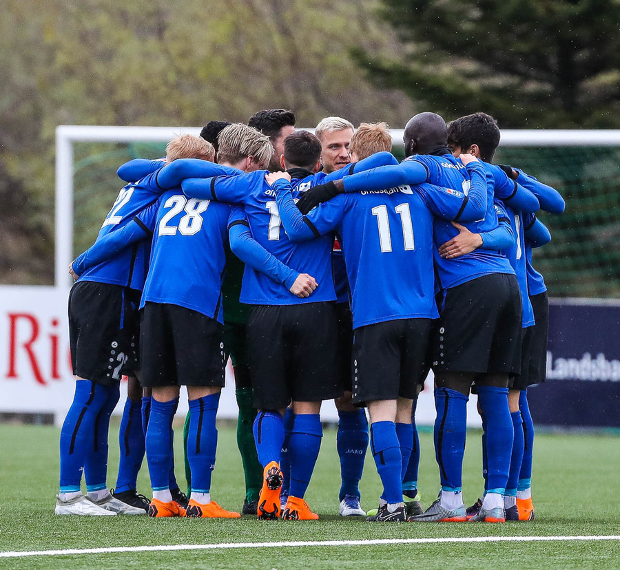 Vallarþulurinn rífur upp mækinn og notar sína yndisfögru rödd með styrk 11/10 mögulegum til að kynna liðinn. Leikmönnum virðist kalt en þeir verða fljótir að hlaupa það úr sér það styttist í þessa Inkasso VEISLU!