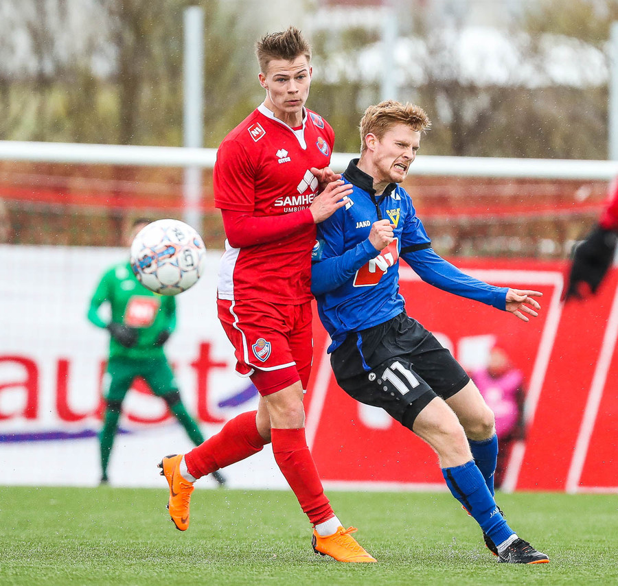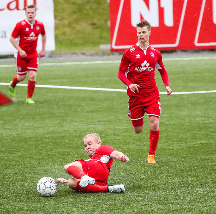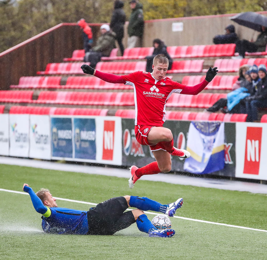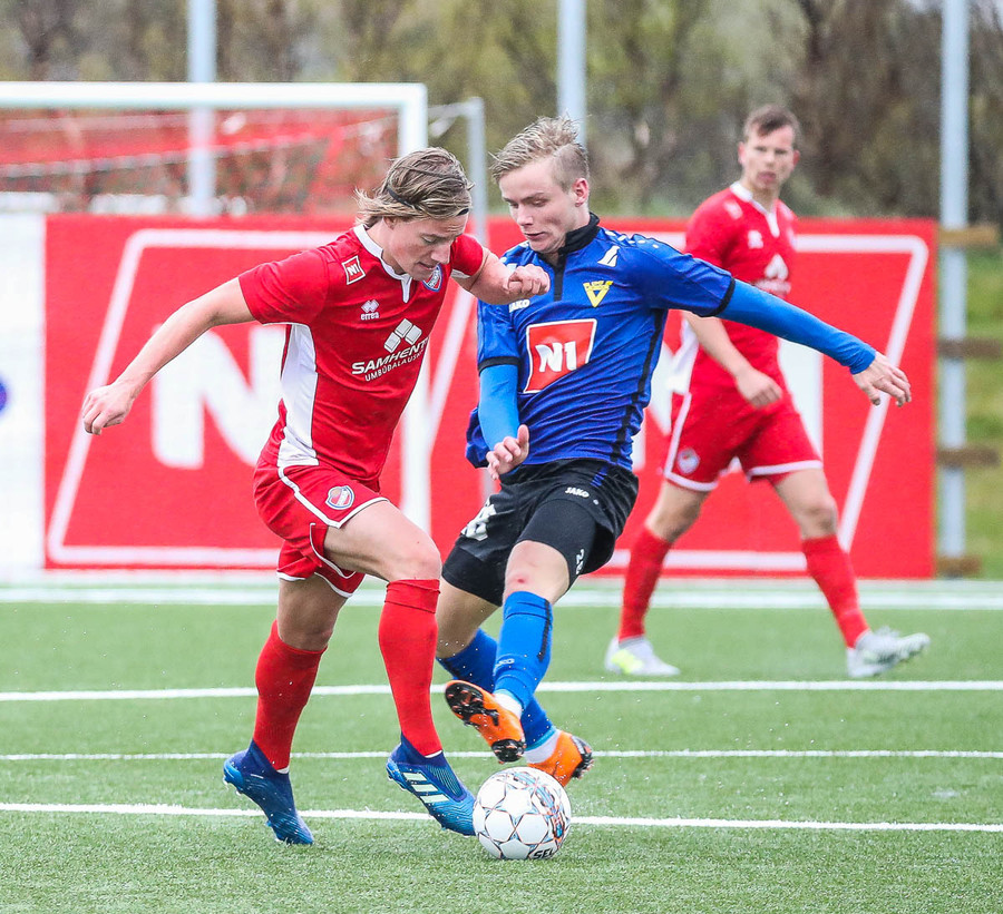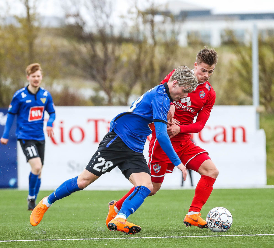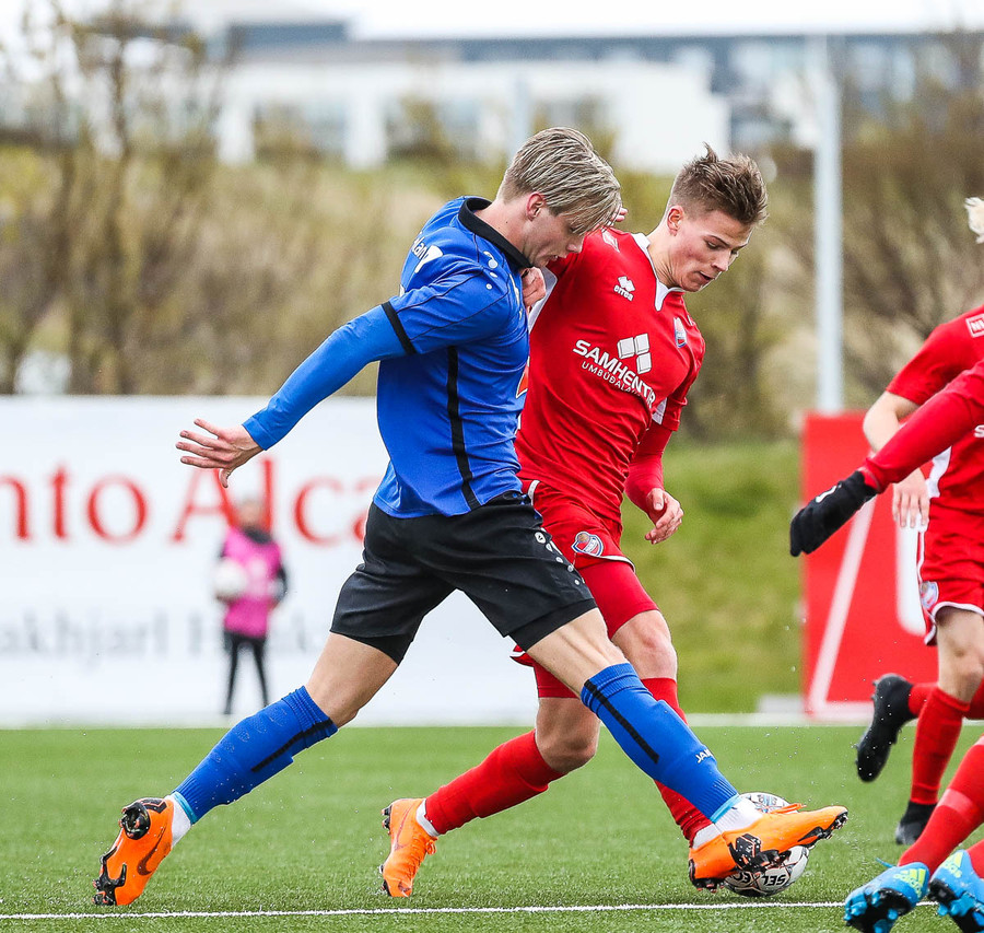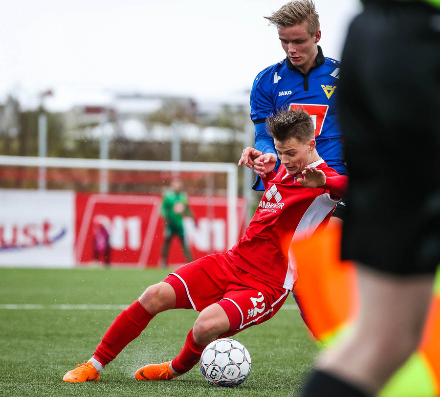 pape við það að sleppa einn í gegn en Jökull í markinu gerir frábærlega og kemur út í markinu og vinnur þetta kapphlaup.