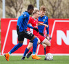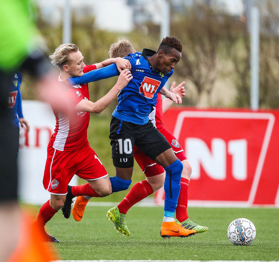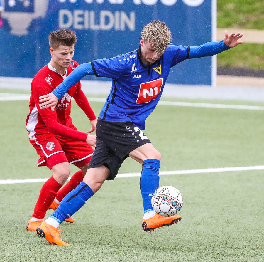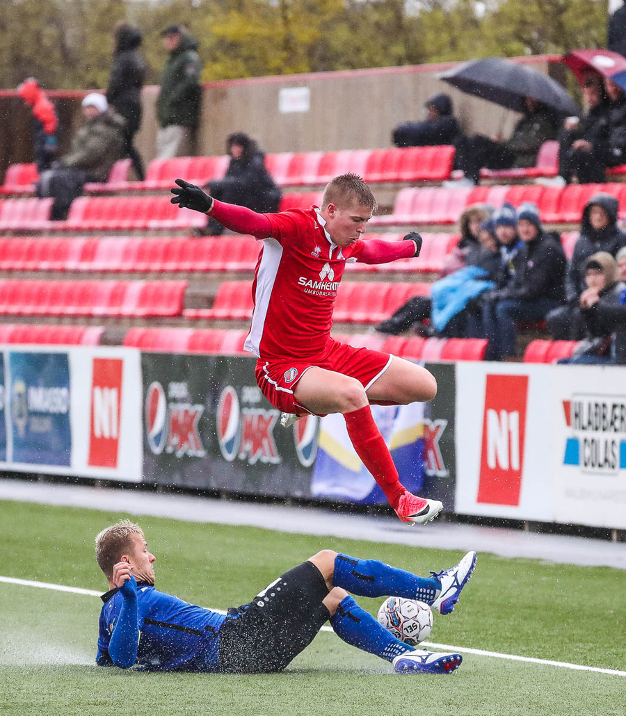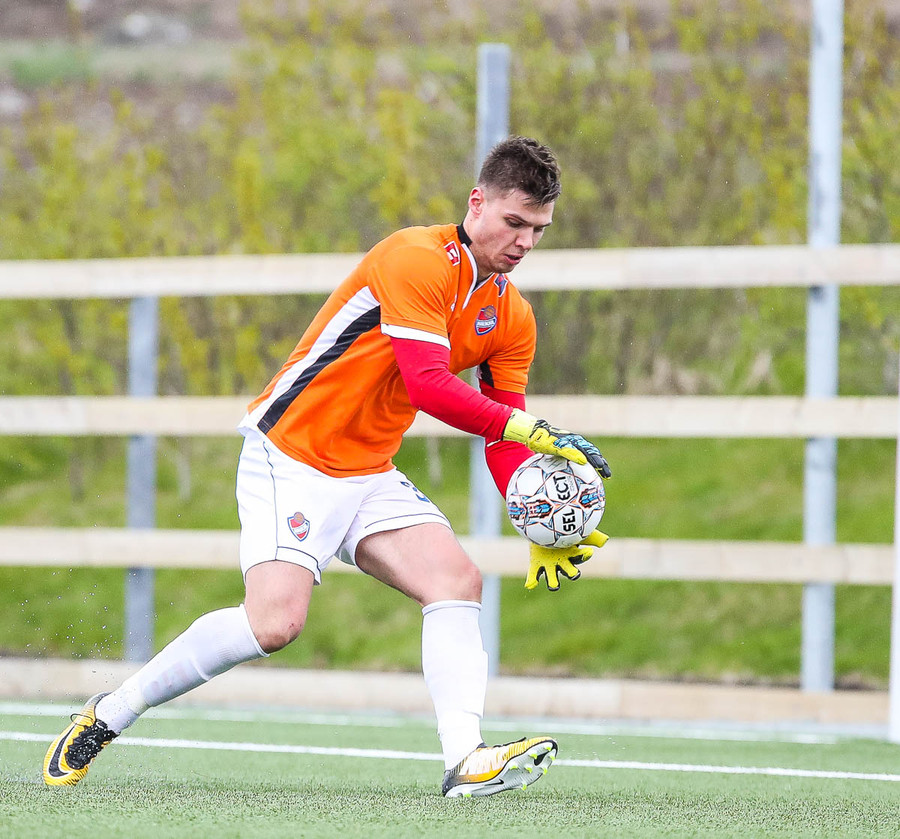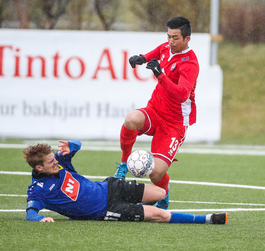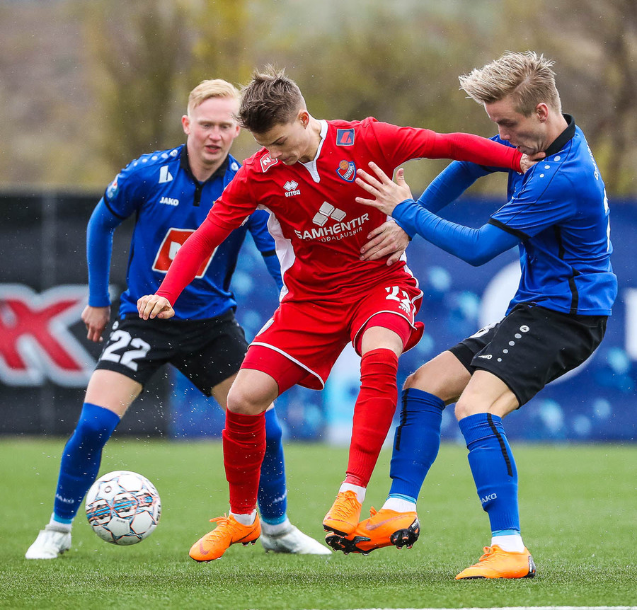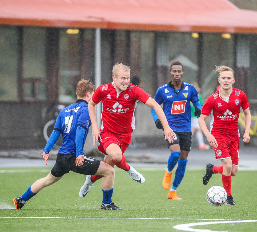 pape við það að sleppa einn í gegn en Jökull í markinu gerir frábærlega og kemur út í markinu og vinnur þetta kapphlaup.