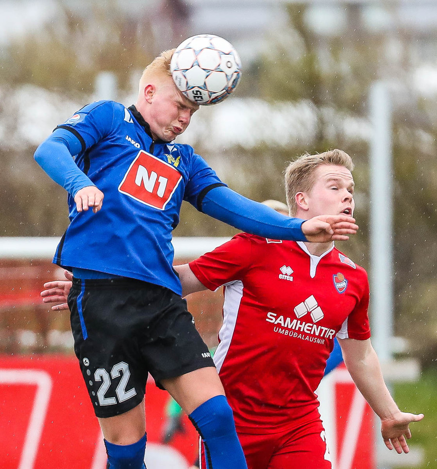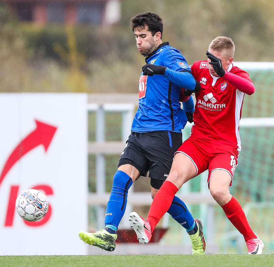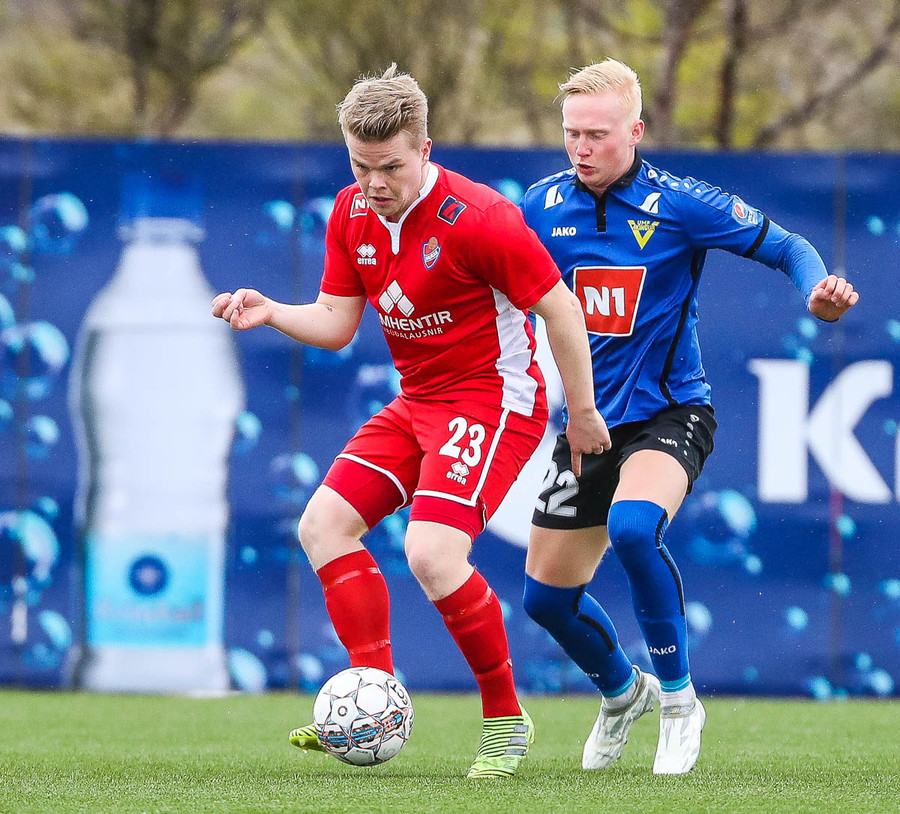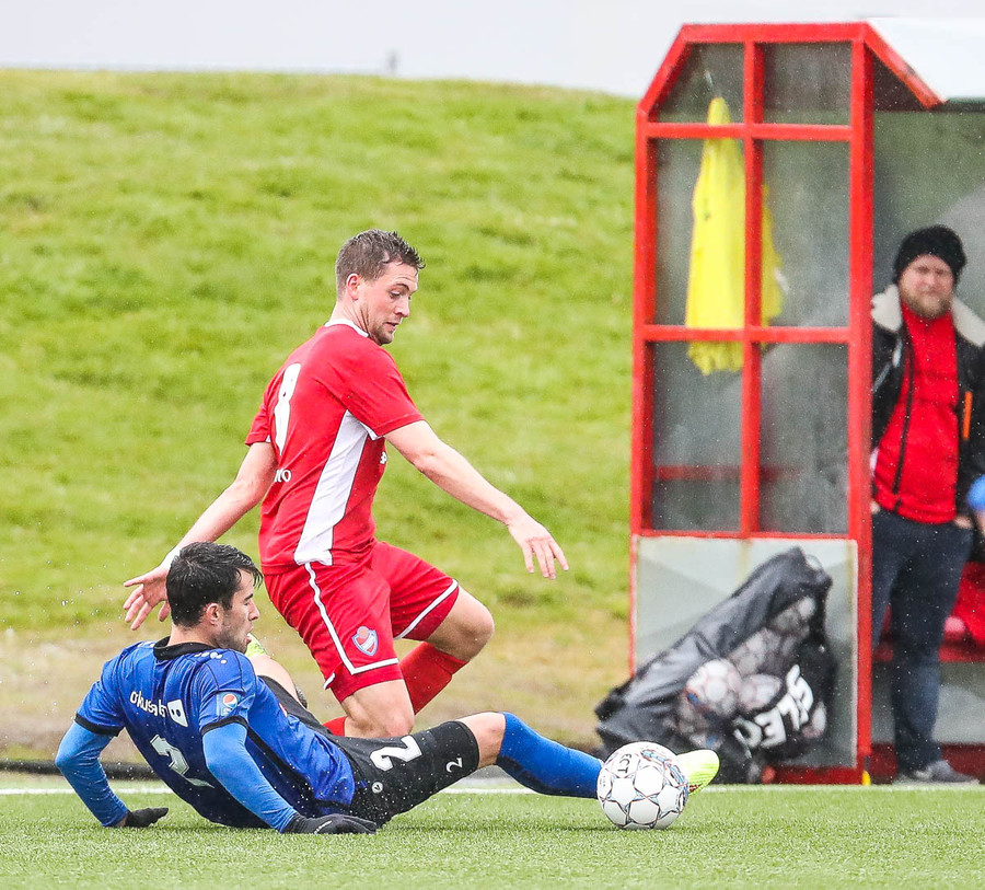Mikill harka núna 4-5 standandi tæklingar á milli liða á fullum krafti áður en Elías dæmir aukaspyrnu. Alvöru harka og barátta við kunnum að meta það.