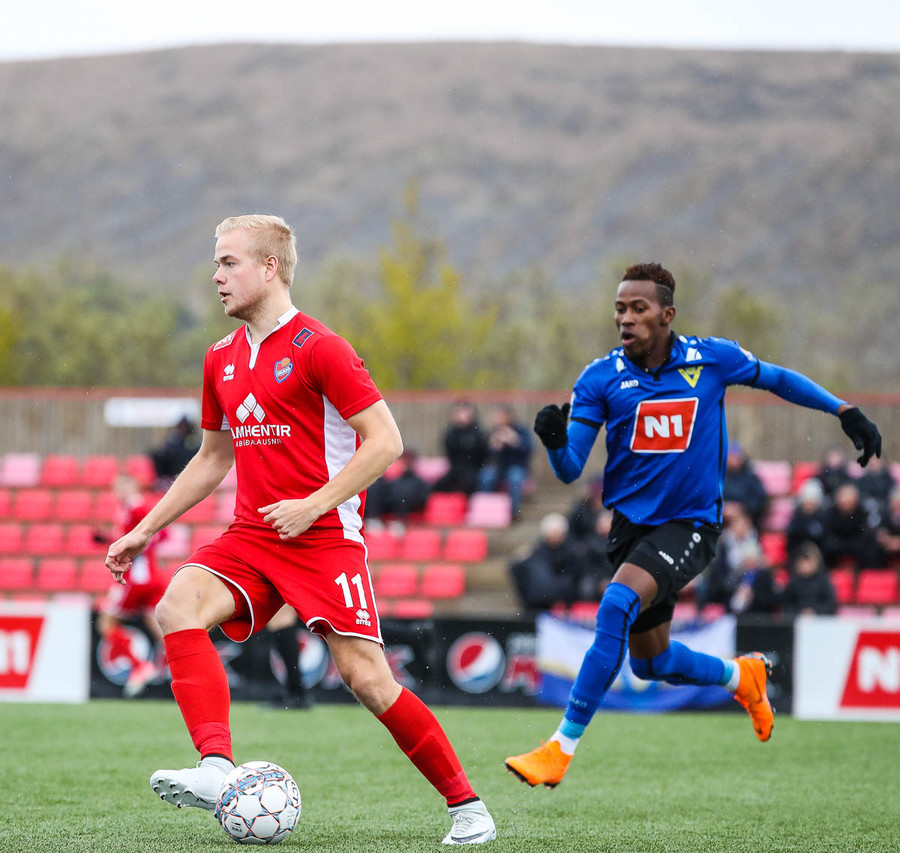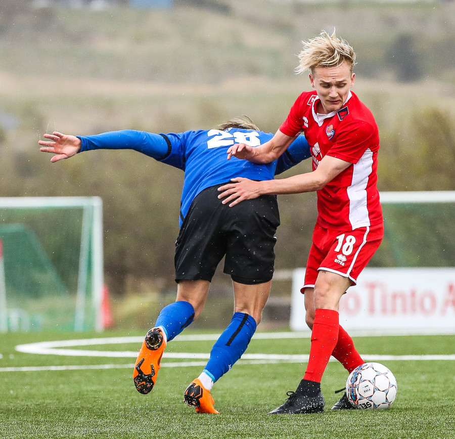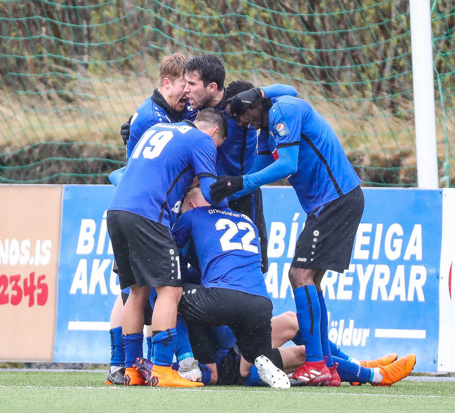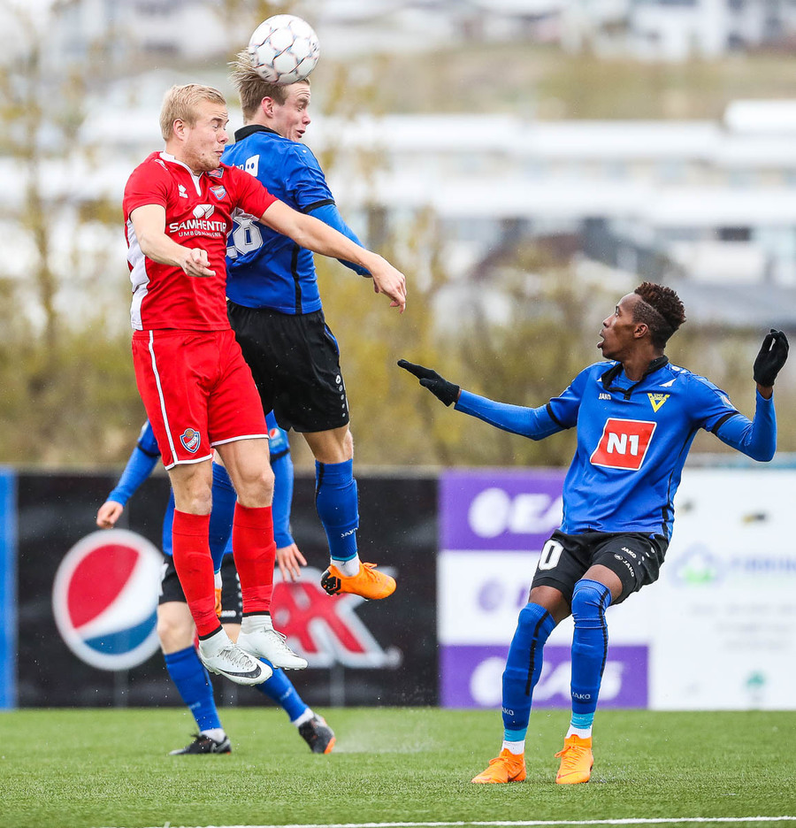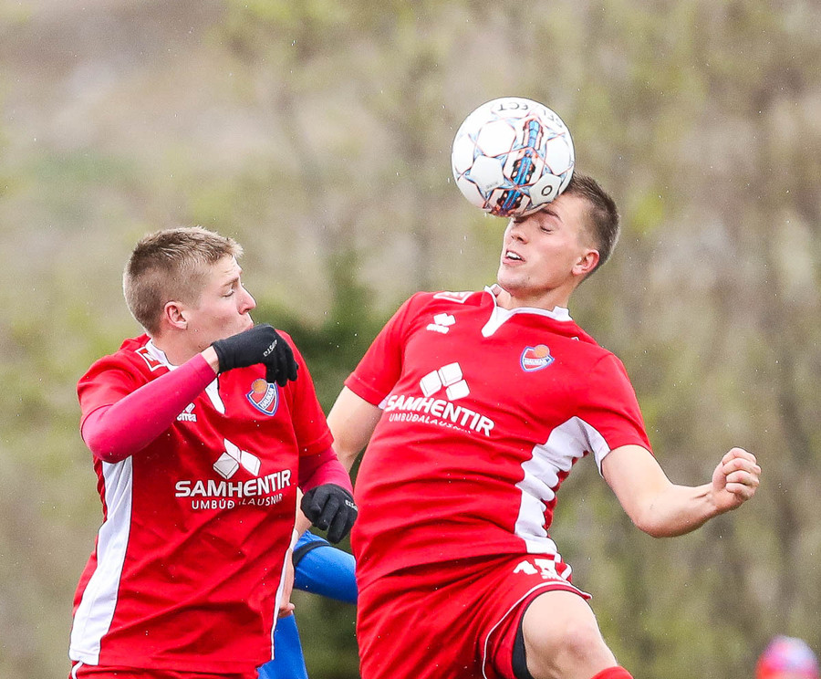 Mikill harka núna 4-5 standandi tæklingar á milli liða á fullum krafti áður en Elías dæmir aukaspyrnu. Alvöru harka og barátta við kunnum að meta það.