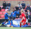 Haukar taka aukaspyrnuna inn á teig þar sem þeir ná skallanum á markið en Fran með eina stórbrotna vörslu!