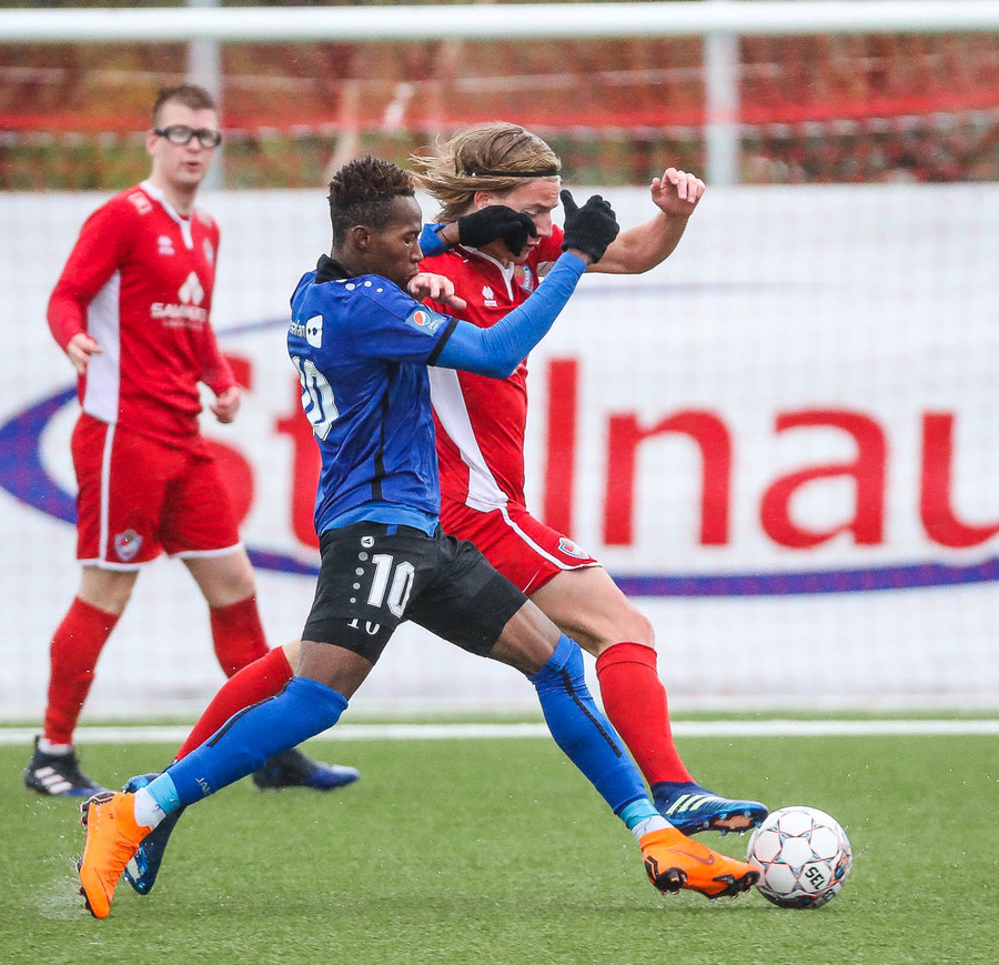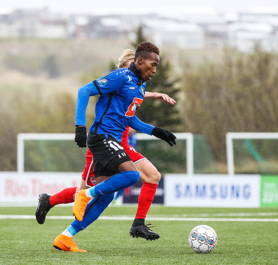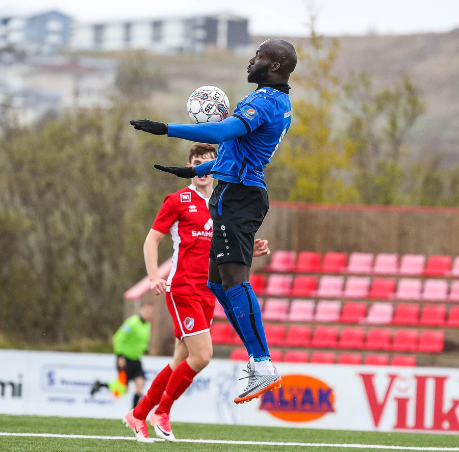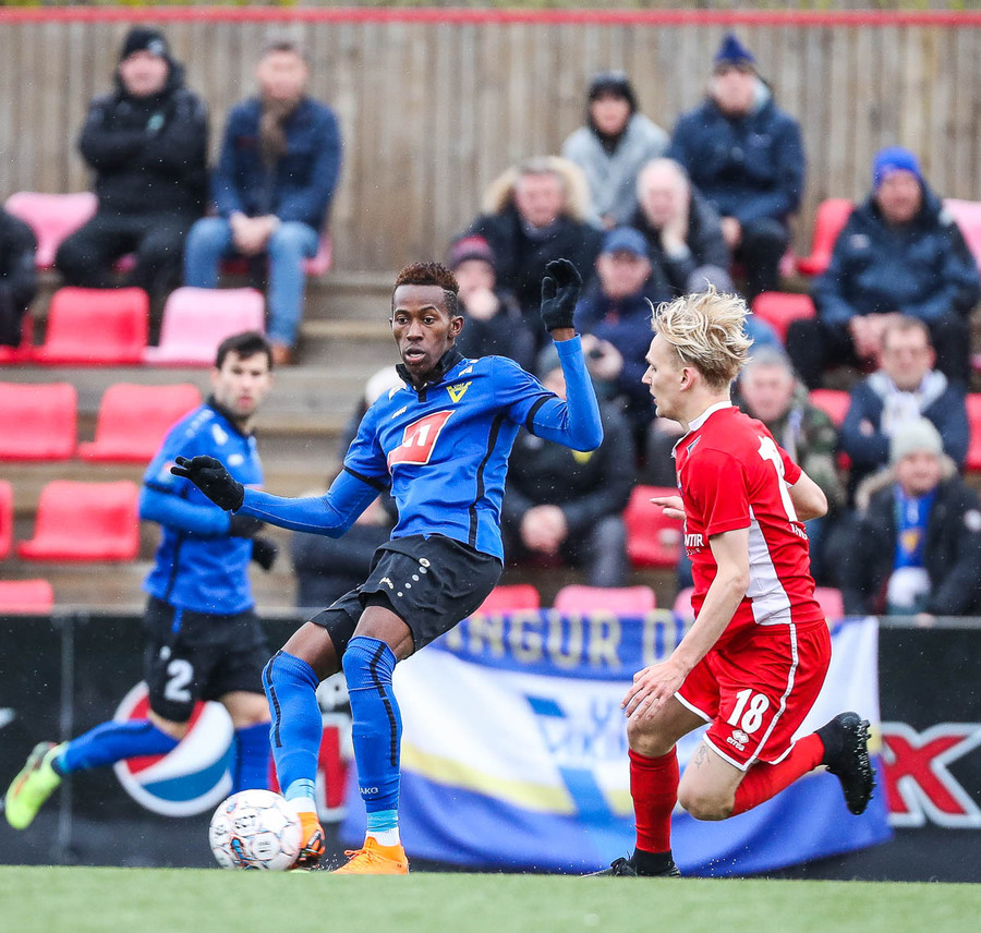 Ef að það eru starfsmenn í Leifstöð Leifs Eiríkssonar að lesa þessa textalýsingu þá átti Kwame skot yfir markið núna sem er líklegt til að enda á vellinum hjá ykkur á næstu sekúndum.