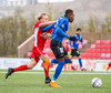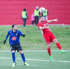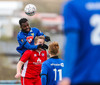 Eli Keke í hörku skallafæri en skallinn hans fer framhjá markinu. Haukar þurfa að vakna aðeins í föstum leikatriðum.