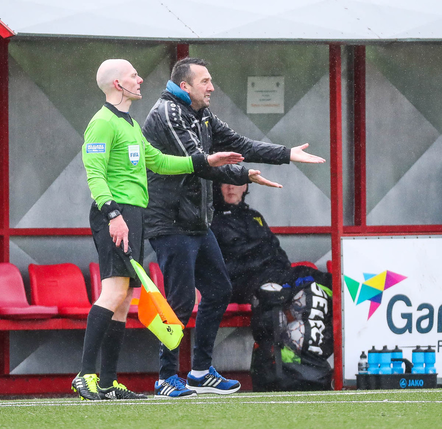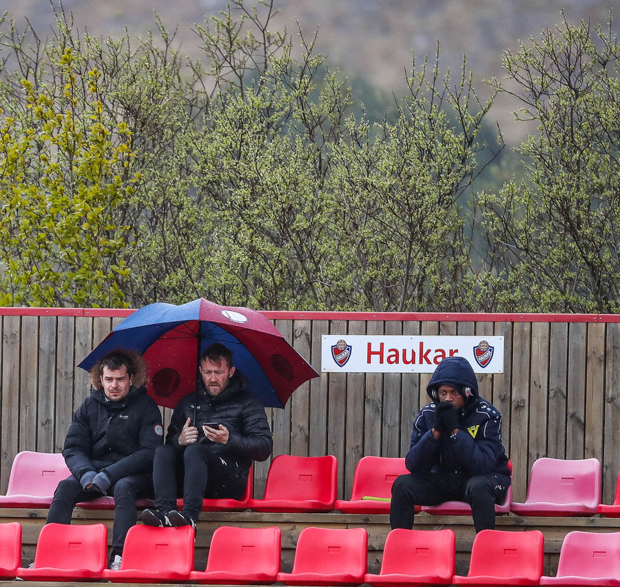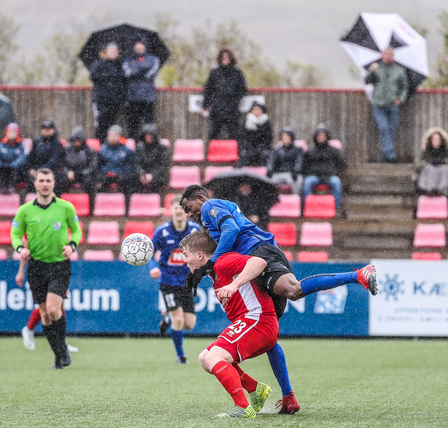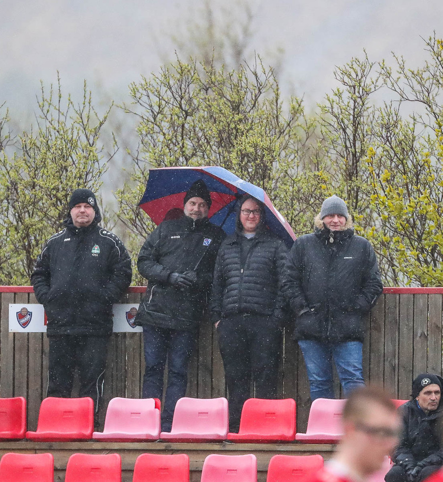 Kári vinur okkar allra síðastliðnu vikur hefur haft mikill áhrif á leikinn. Háir boltar og sendingar svoleiðis rjúka útaf vellinum þegar þær eru reyndar. Línuvörðurinn nær mér þarf að hafa sig allan við til að fjúka ekki yfir miðlínuna.