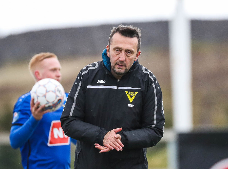 Ejub ekki sáttur eftir að leikmaður hans er tekinn niður á hægri kantinum.