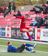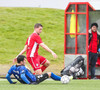 Alexander Helgi Sigurðarson..... Hvað varstu að gera þarna? Hann tekur massívt tilhlaup að boltanum og ætlar svoleiðis að þruma honum á markið úr aukaspyrnu en spyrnan hans fer í 90 gráður til vinstri og svona 6 metra upp í loftið. Arfaslök spyrna.