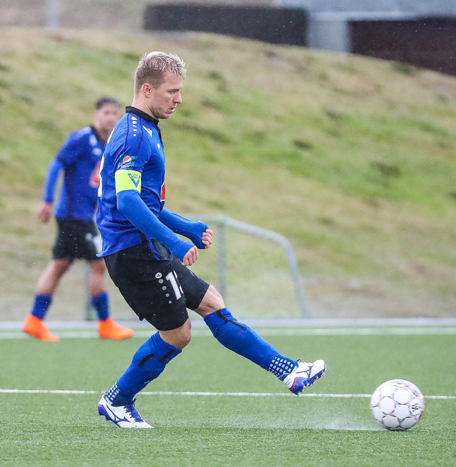 Haukar fá aukaspyrnu á stórhættulegum stað með vindinn í bakið. Fyrirliðinn Gunnar Gnnars ætlar að taka hana.