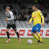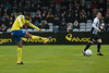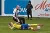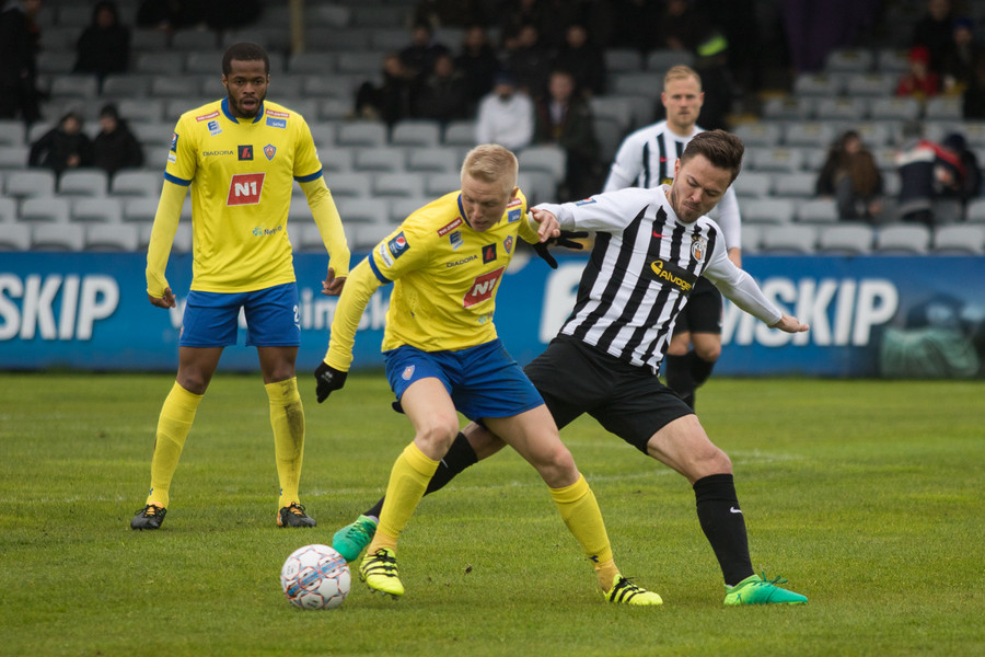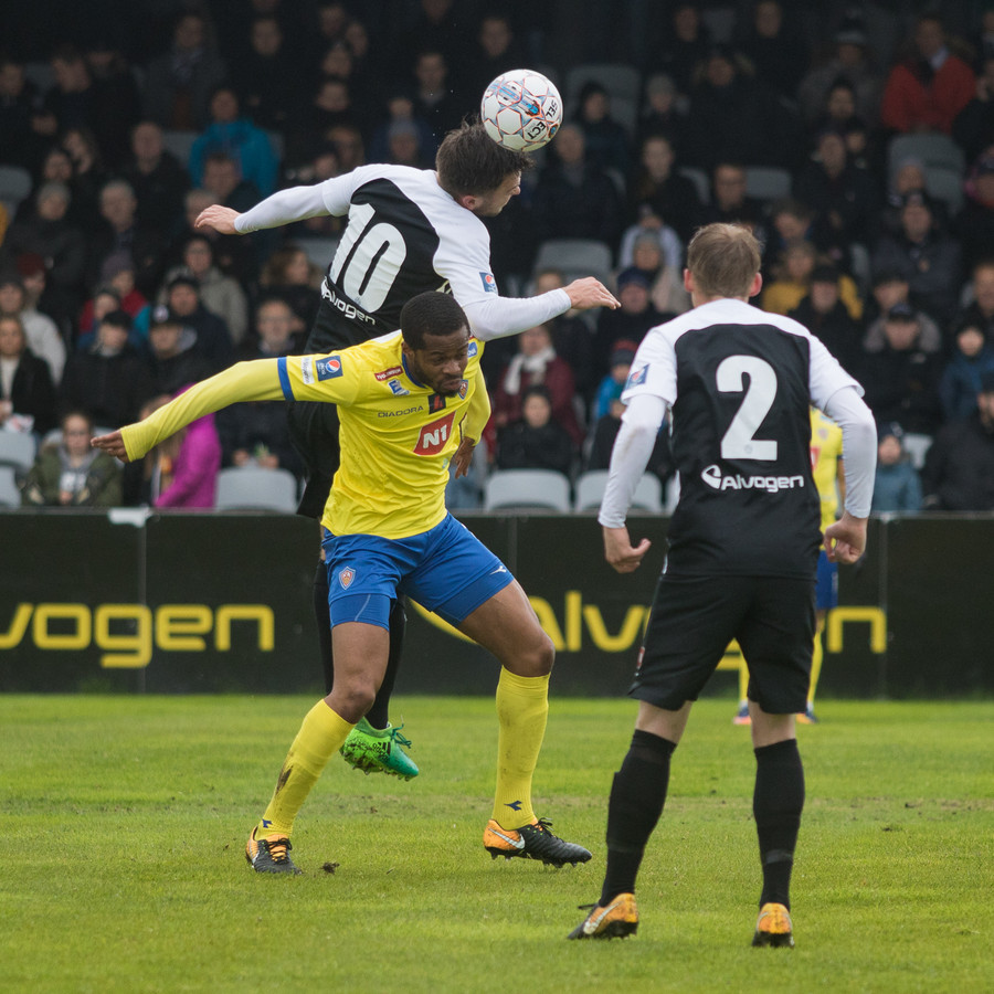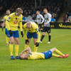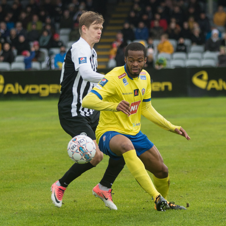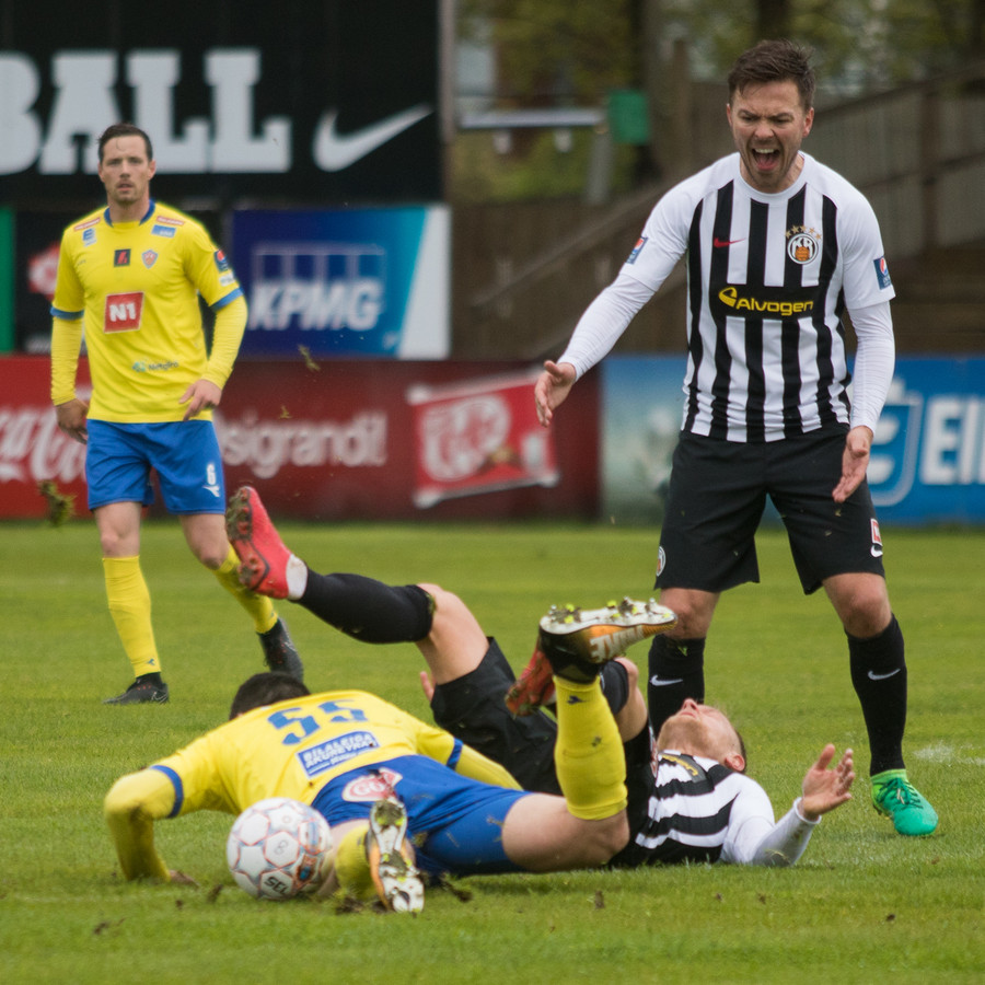 Hrannar liggur hér eftir á vellinum eftir skallabaráttu við Kennie Chophart. Sjúkraþjálfari kemur inn og hugar að honum. Spurning hvort að hann geti haldið áfram leik.
