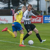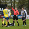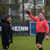 Steinþór missir hér boltann of langt frá sér og fer í eina fullorðins á eftir boltanum. Pétur dæmir aukaspyrnu og KR-ingar vilja fá spjald. Pétur sleppir því hins vegar.