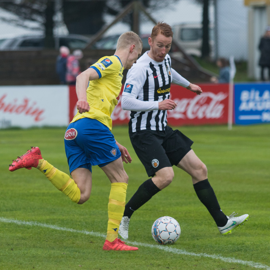 Hallgrímur Mar nær sendingu fyrir markið sem að Ásgeir nær að setja höfuðið í en boltinn nær ekki á markið.