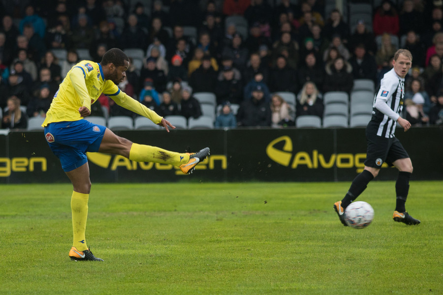 Kennie Chophart reynir hér skot utarlega í vítateignum eftir sendingu frá Pablo Punyed en það fer framhjá markinu.