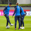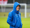 Íslensku landsliðsmennirnir eru komnir upp á völl að hita upp. Þetta eru nokkuð fullkomnar aðstæður til fótboltaiðkunar hér í kvöld.