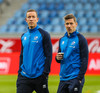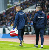Þegar ég mætti á völlinn voru Tryggvi Guðmundsson og Brede Hangeland í hrókasamræðum á norsku. Mjög gaman að því.