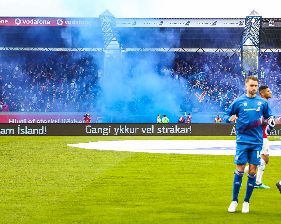 Við bíðum enn spennt eftir norska liðinu. Ég heyri út undan mér að Tólfan er mætt á völlinn, þá byrjar heldur betur líf og fjör. Menn gera sér glaðan dag á fanzone og fara svo að koma sér fyrir í stúkunni þegar nær dregur. Klukkutími og korter í leik.
