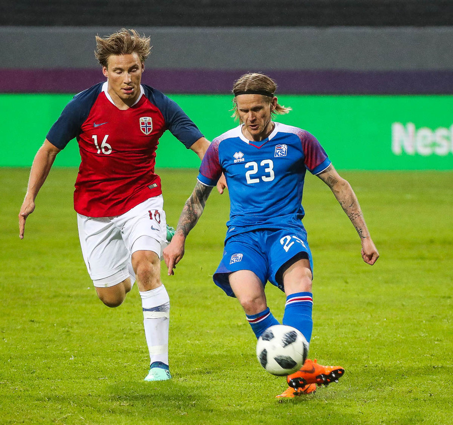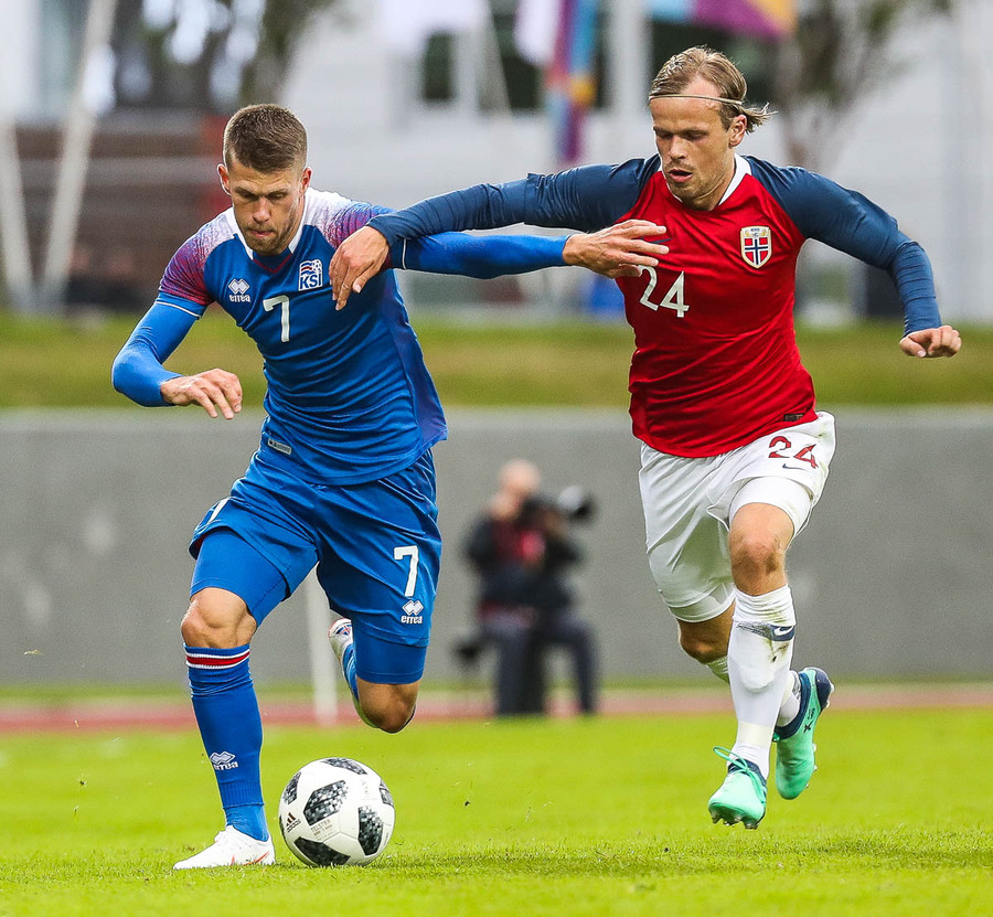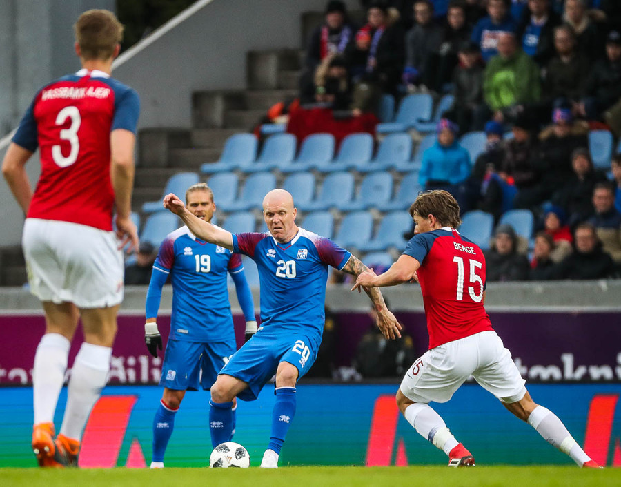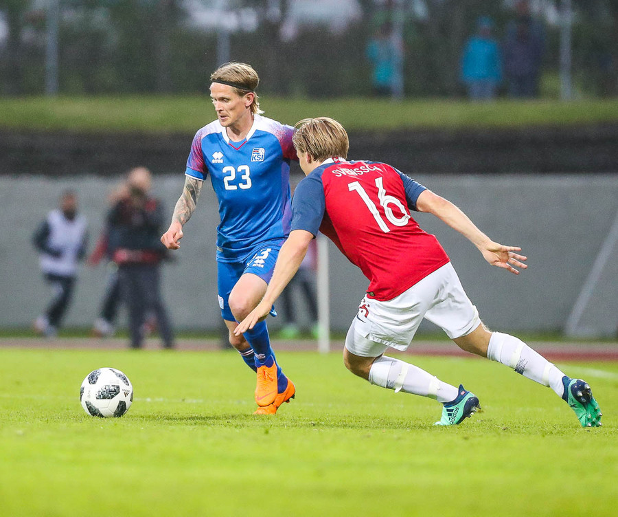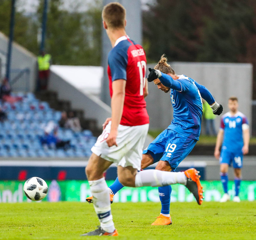 Líklegt er að Kári Árnason verði fyrirliði gegn Noregi í kvöld. Það verður að segjast að það er svolítið mikill sjarmi í því ef tveir byrjunarliðsmenn Íslands á HM í sumar komi úr Pepsi-deildinni. Þá á ég að sjálfsögðu við Kára, sem gekk nýlega í raðir Víkings, og Birki Má Sævarsson sem spilar nú með Val. Svo má auðvitað ekki gleyma Ólafi Inga Skúlasyni, sem gekk nýlega í raðir Fylkis, sem fær örugglega einhverjar mínútur úti í Rússlandi. Þetta er skemmtilegt, krúttlegt.