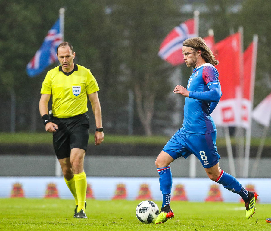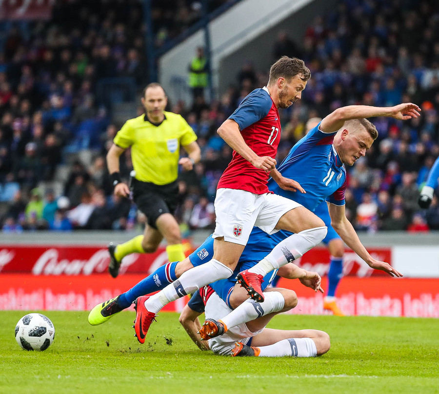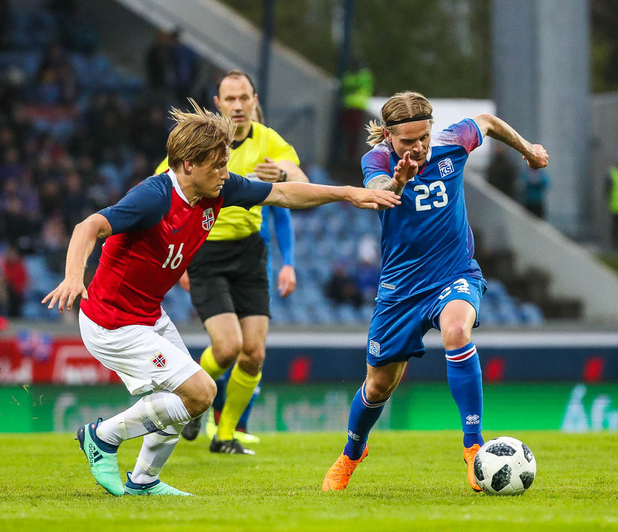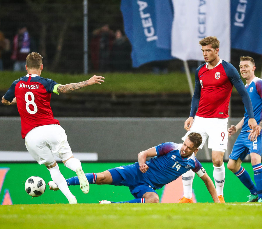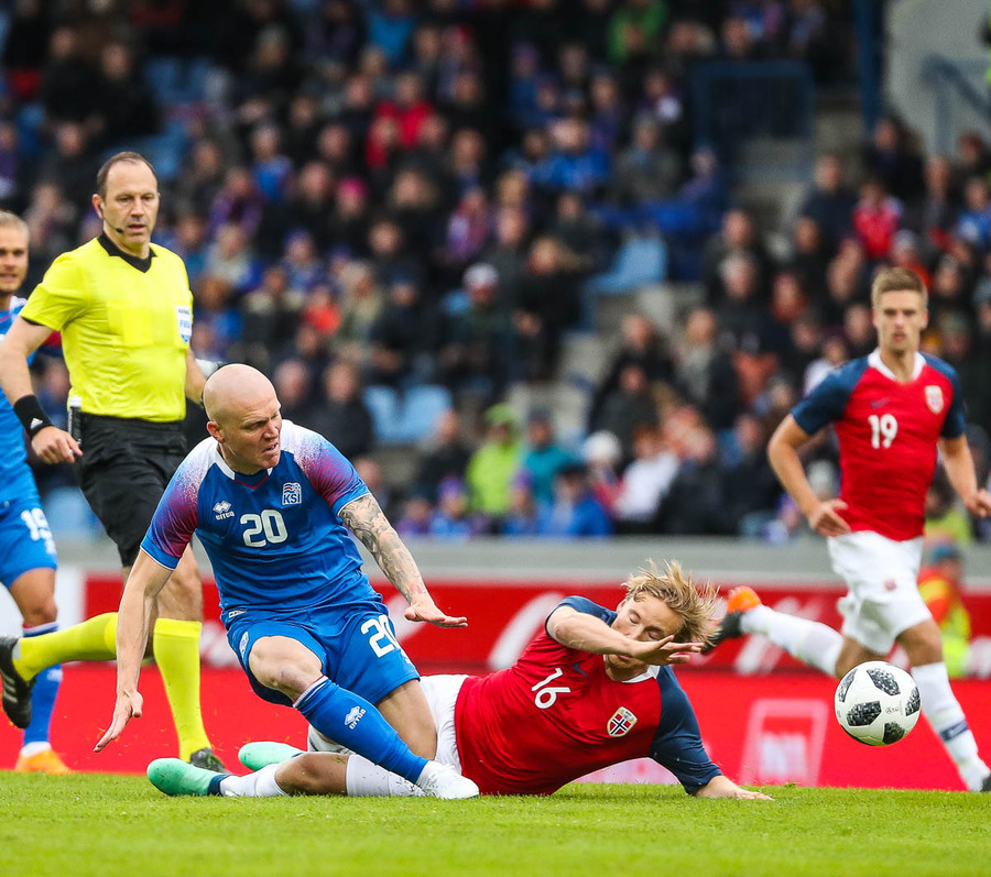 Líklegt er að Kári Árnason verði fyrirliði gegn Noregi í kvöld. Það verður að segjast að það er svolítið mikill sjarmi í því ef tveir byrjunarliðsmenn Íslands á HM í sumar komi úr Pepsi-deildinni. Þá á ég að sjálfsögðu við Kára, sem gekk nýlega í raðir Víkings, og Birki Má Sævarsson sem spilar nú með Val. Svo má auðvitað ekki gleyma Ólafi Inga Skúlasyni, sem gekk nýlega í raðir Fylkis, sem fær örugglega einhverjar mínútur úti í Rússlandi. Þetta er skemmtilegt, krúttlegt.