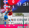 Leikurinn fer nokkuð rólega af stað. Norðmennirnir hafa verið meira með boltann til þessa en hafa í sjálfu sér ekki skapað teljandi hættu. Þeir splæstu í eitt "íslenskt" innkast rétt í þessu sem ekkert varð úr.