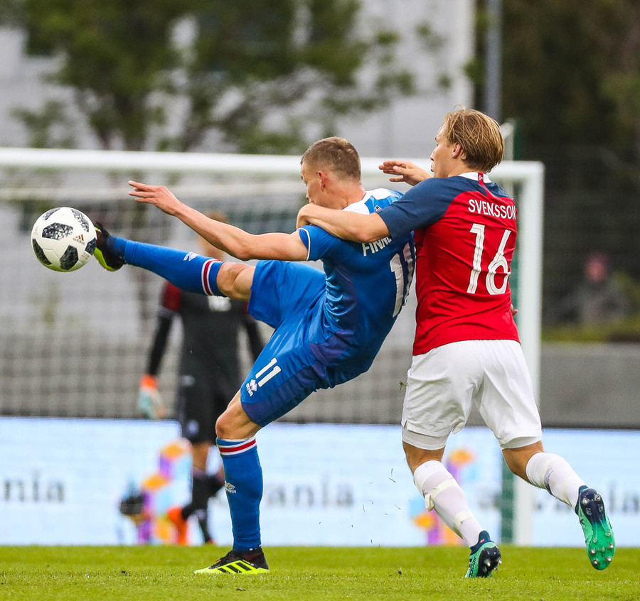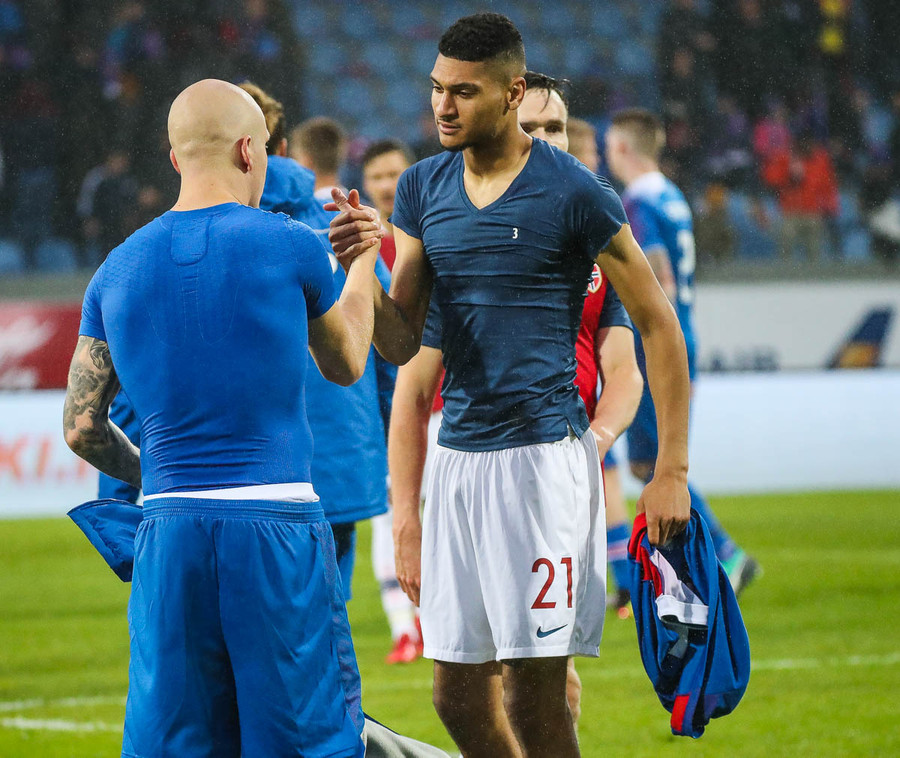 MARK! Norðmenn jafna og það var gjöf frá Frederik Schram!!! Hryllilega dapurt hjá Frederik, hann reynir að sóla Joshua King sem hirðir bara af honum boltann og skorar í autt markið. Þetta var alveg virkilega slæmt hjá Frederik, þó hann hafi fengið erfiðan bolta átti hann bara að negla honum frá sér. Þetta minnti mann á ákveðinn markvörð Liverpool á dögunum, svo slæmt var þetta. Svona augnablik geta haft virkilega neikvæð áhrif þegar menn eru að reyna að sanna sig sem framtíðar landsliðsmarkverði.